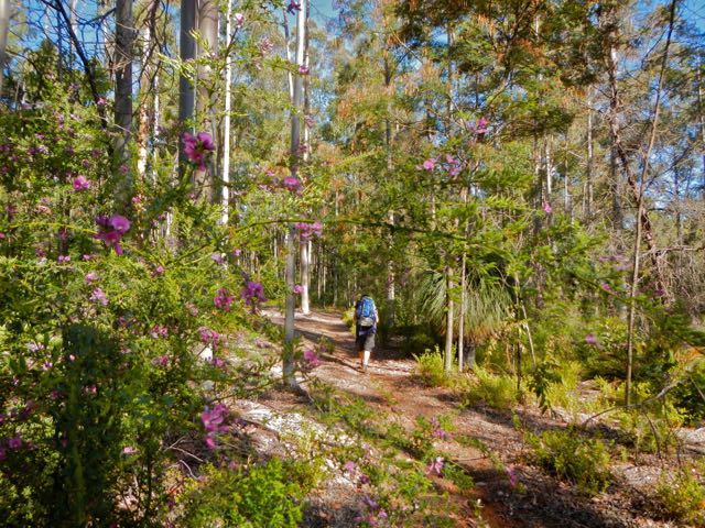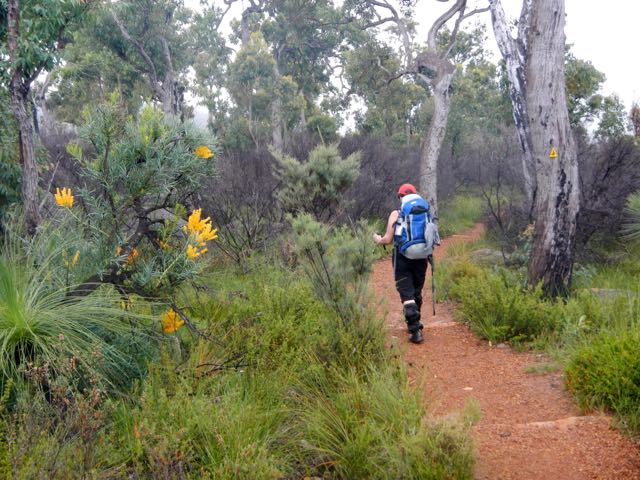 In Perth last December, with 10 days available to us, we set off to hike 2oo km down to the first town on the trail, Dwellingup. We had organised a couple of food drops at road crossings after 3 and 7 days to cut down on bulk in our packs but carried a tent as well as our bedding, cooking gear, clothes, mozzy net and water. As it turned out we had the huts to ourselves and didn’t need the tent but at other times of the year the trail can get busy with up to 20-30 people at the camps at night.