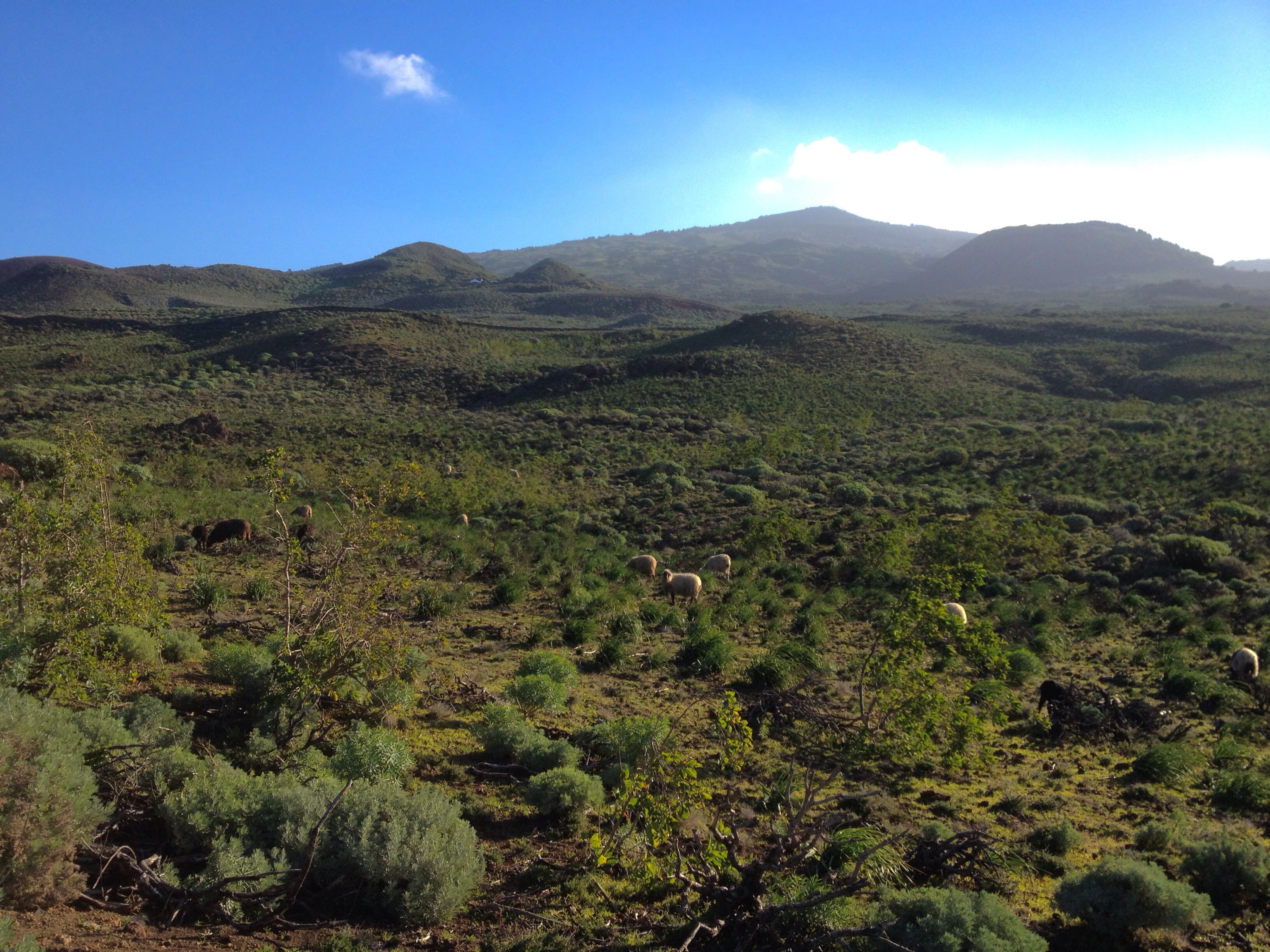 Struggling ever higher the landscape grew greener with real grass and cows sheep and goats that were free to roam. If it wasn’t for the presence of many volcano craters it could have been Galway.