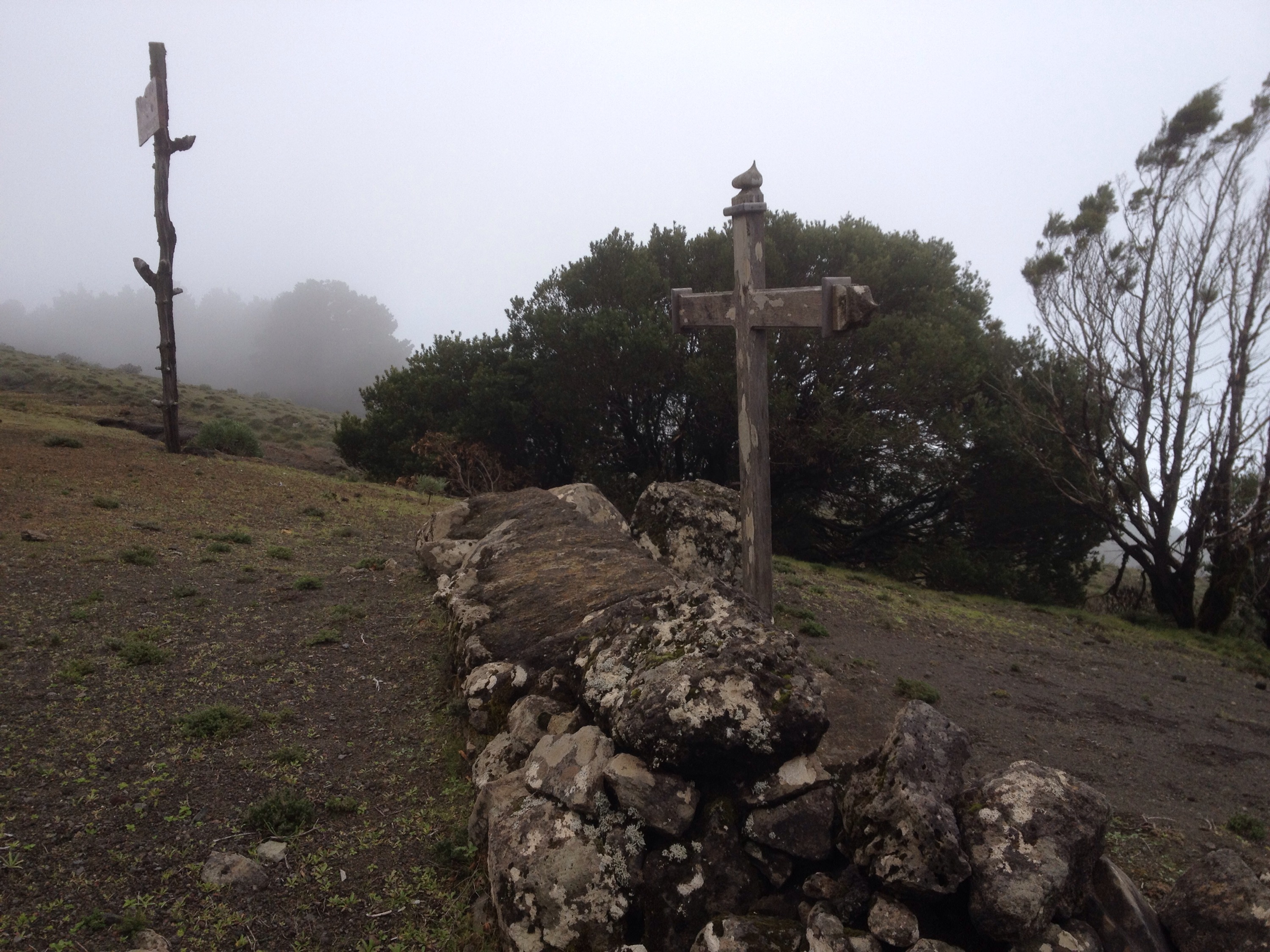 Then things started to get cold as I got up into the cloud passing the Cruz de Los Humilladeros at 1220mt.