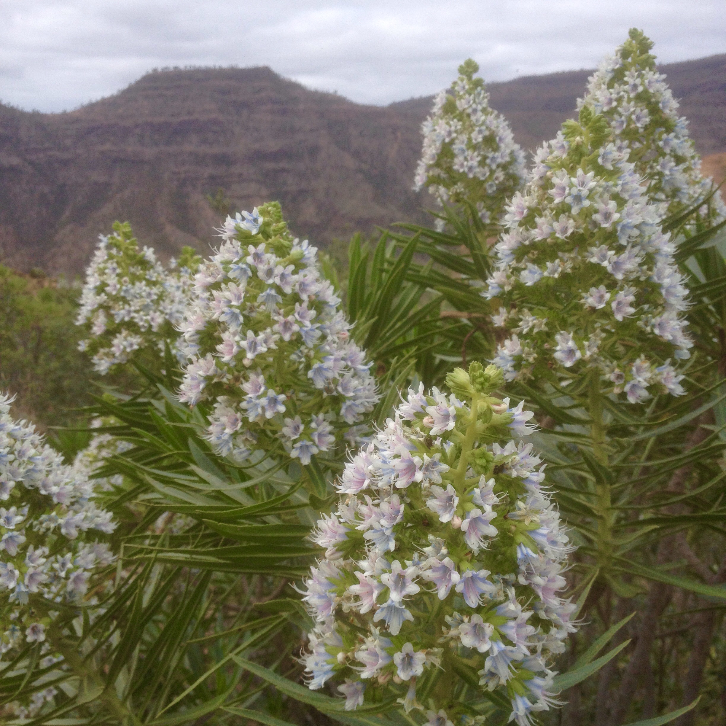 A pretty permanent looking sign which led me to believe that this wasn’t some minor rockfall like the ones I’d come across so far. Maybe I could skirt around it or climb over it but I didn’t want to get to the bottom of the valley to find I couldn’t and have to come all the way back again. So I followed the sign for the S57 pointing me towards Ayaguares. And very nice it was too. It slowly gently descended across the dry rocky landscape under towering pinnacles and around great boulders. First through thinly scattered pine and then scrub which on closer inspection contained a wealth of colour.