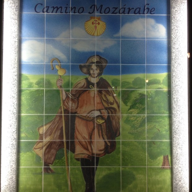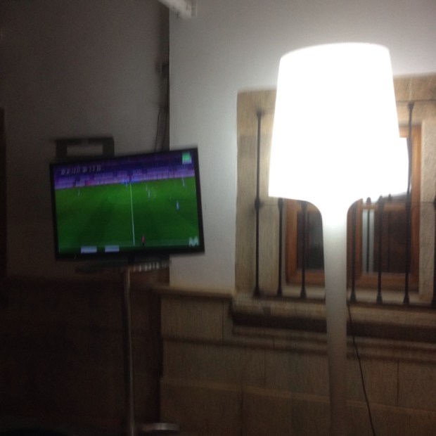 And 6km of tarmac later I arrived here. I went up and down the street where the Casa parroquial was supposed to supply a bed for a weary pilgrim but I couldn’t find it. I went passed a hotel with Camino signs many times with a signs advertising special prices for rooms and menu for the peregrino and eventually gave in. So here I am writing this on the outside terrace where the patron has kindly erected a massive football full TV screen and even more massive light for my comfort