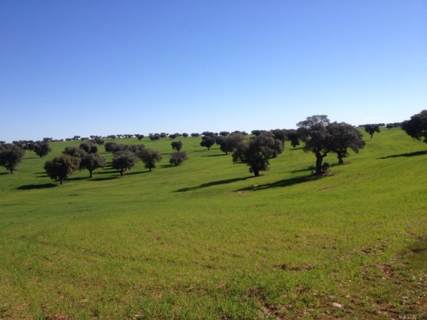 Enjoying my first Spanish “real ale” made in the local area from some of the barley I’ve been walking past all day I guess. It has the Bellota certification of origin as does the celebrated olive oil of the region around Monterrubio.