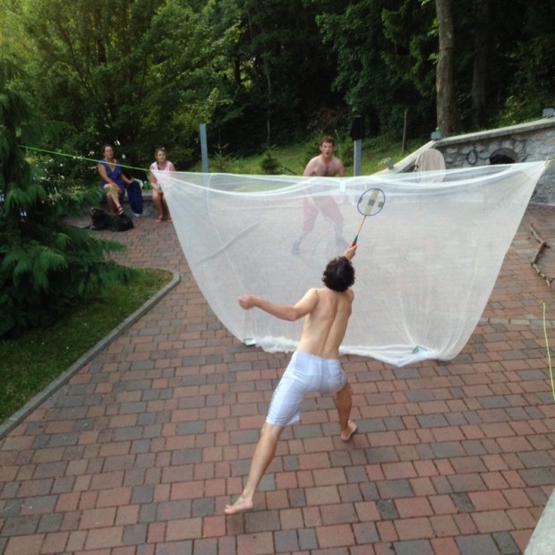 Every morning and night there were hard fought badminton competitions on the patio.