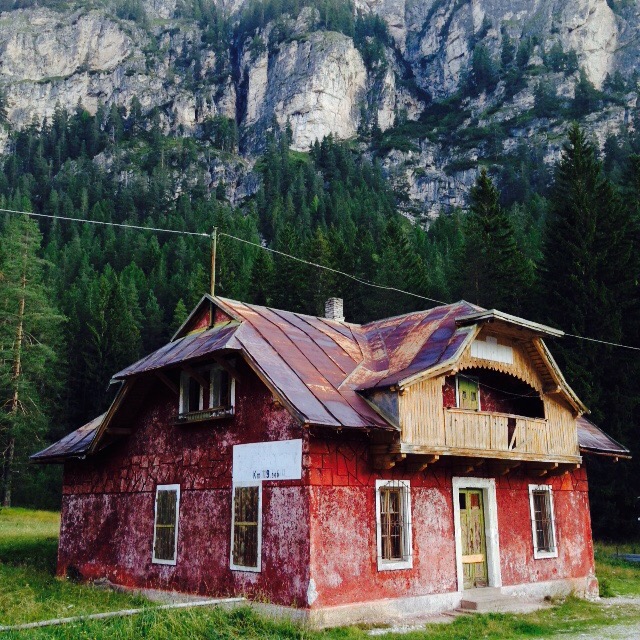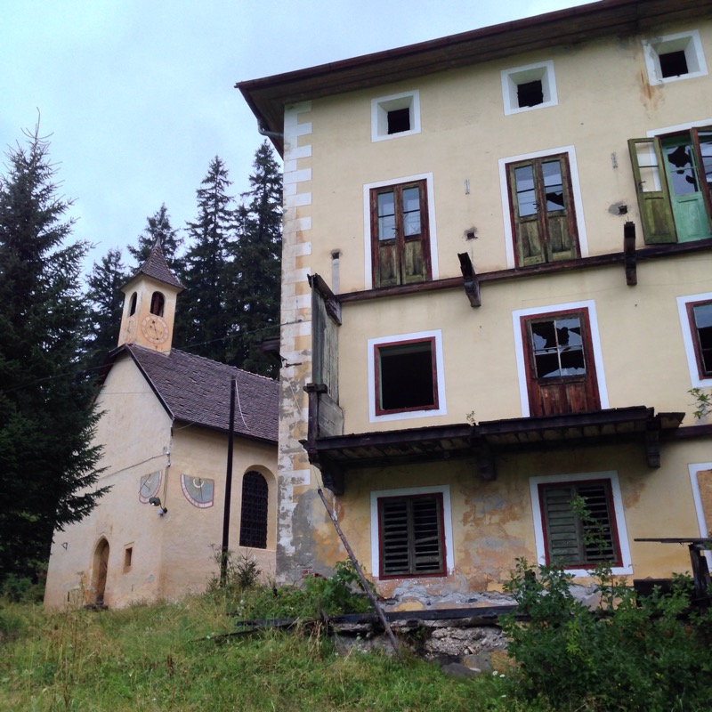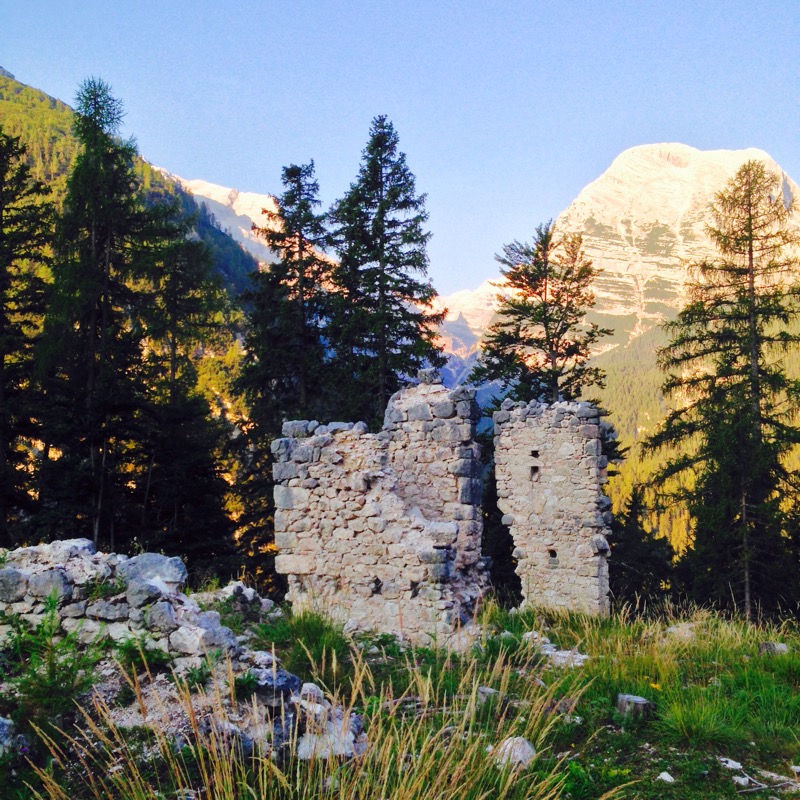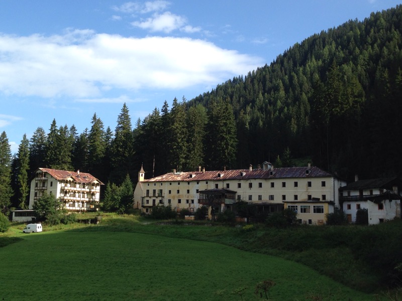 We had spent the night in the Ampezzo National Park next to the ruins of a famous hunting lodge that had been built by Irish Countess Lady Emily Howard-Bury and her American millionairess friend Anna Potters-Pott. (I’m not making this up) Originally it had looked more like a castle than a lodge  but it had become a victim of WWI when burned down by the Austro Hungarian side to prevent the Italians from using it.  Apparently soldiers from both sides would gather there peacefully together looking for food.