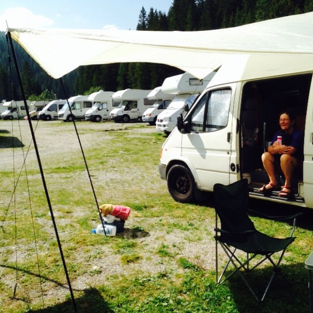 What did though was getting back to discover that the €10 parking ticket we’d put on Tranny wasn’t enough to stop us getting a €30 fine for putting a camper in a car park. By now the town was heaving and with clouds gathering and rain forecast it was time to pull out. We made it out of the valley to the north and against a stream of traffic, up another a little further west the Val do Braies Vecchia.
