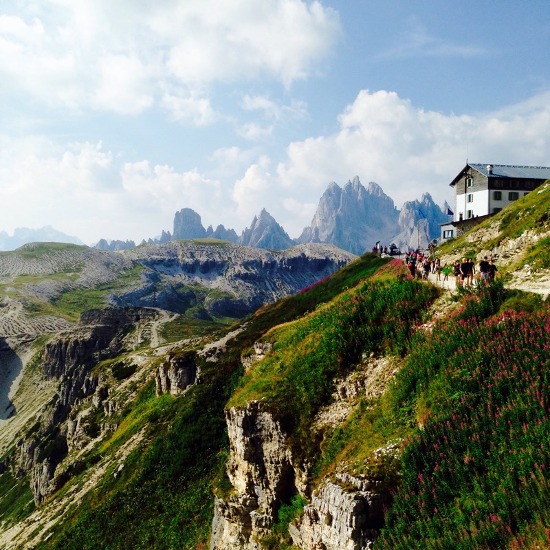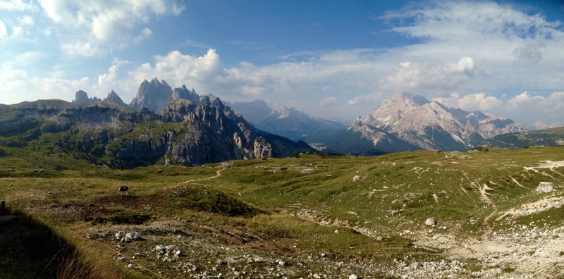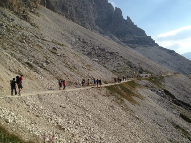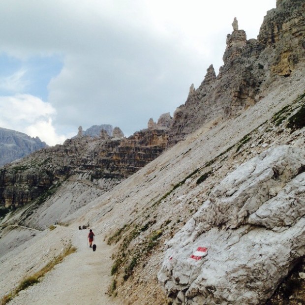 This was going to be a busy weekend. A national holiday, the feast of the Assumption, and we were heading to what’s probably the most beautiful and popular part of the Dolomites, the Tre Cime du Lavaredo or Drei Zinnen both languages being spoken this far north.