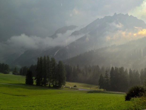 Serious thunder and lightning that lit up the clouds lasted most of the night but the morning brought an improvement and we were able to take our last walk in the Dolomites.