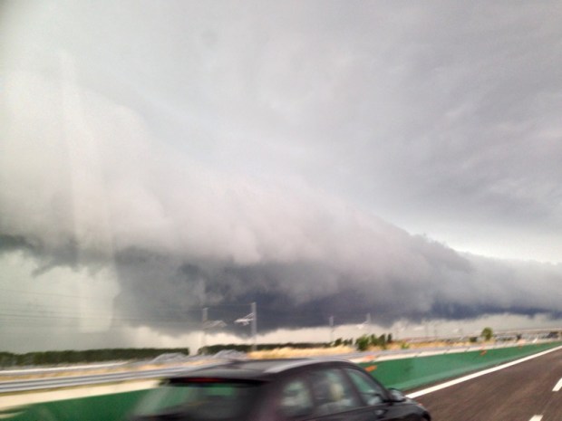 Eventually, for unknown reasons, it cleared enough for Tranny to prove her/him self again by cruising for hours at 120kph. And through a deluge. We felt like storm chasers as we belted along the edge of the strangest cloud formation.