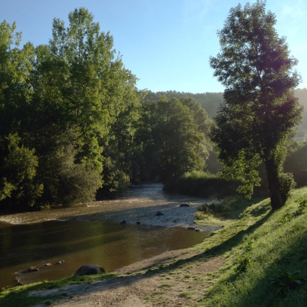 But soon deteriorated and we had a wild and wet drive north. We were heading to another area we’d never been to ,the Alpes Mancelles in the Parc Naturel Normandie Maine. There was a free camper parkup next to the river Sarthe in St Leonard des Bois