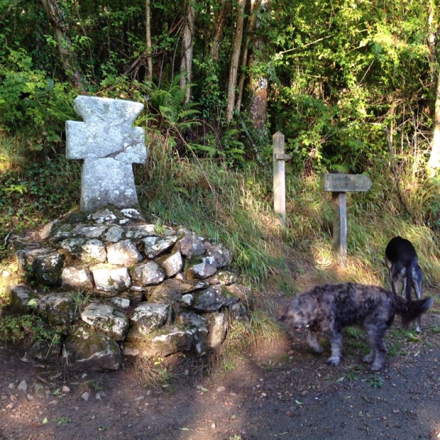 Included in the Natura 2000 list of remarkable European sites because of its geological and topographic diversity it’s been an area that has attracted nature lovers for centuries. To name it Alpes is overstating its height somewhat and it was hardly in the same league as a lot of the stuff we’ve been exploring but it was pleasant enough and the route was studded with signboards and viewing pipes and rock samples to explain the landscape, most of which was due to those volcanos again.  The first thing we came across was an ancient stone cross marking the pilgrimage to Mont de St Michel.