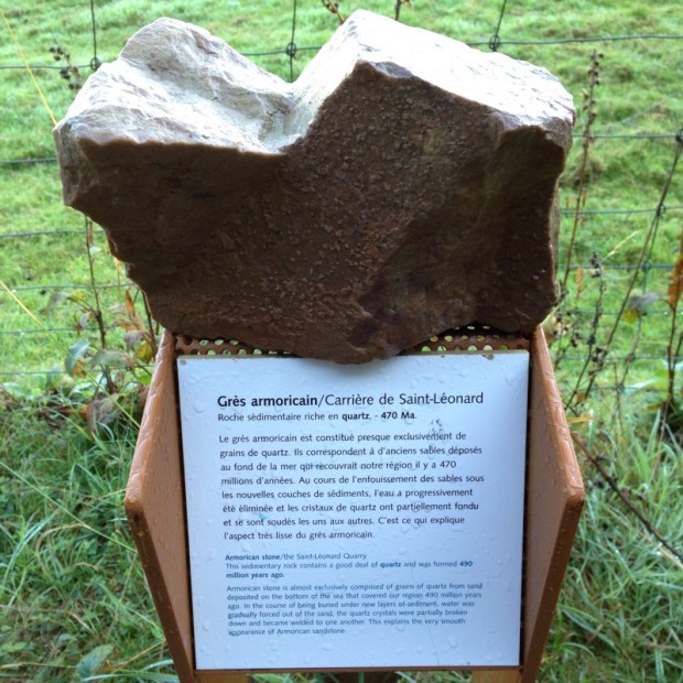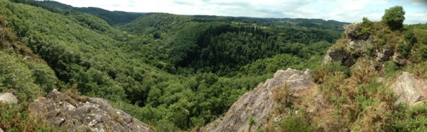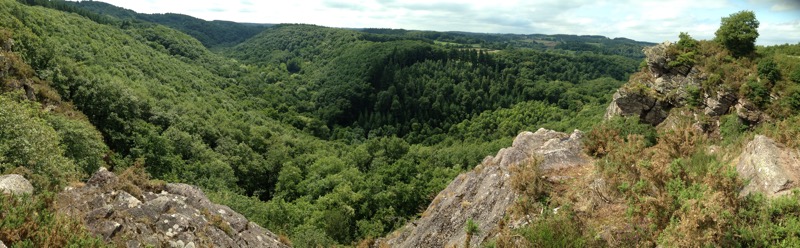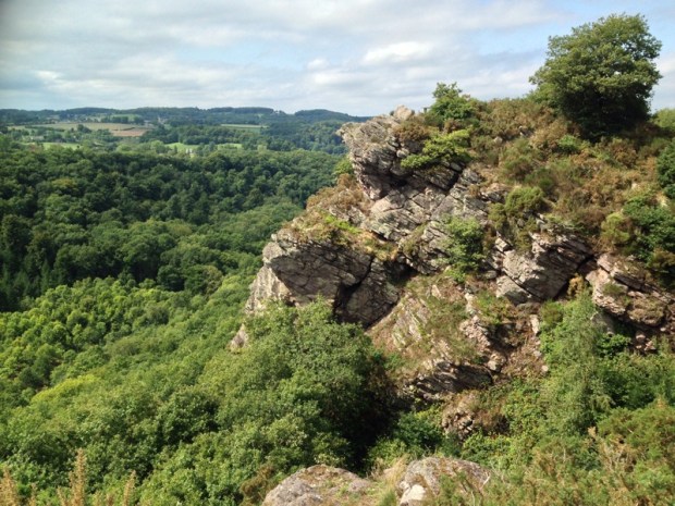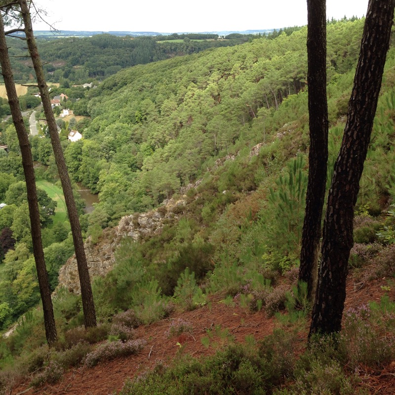 We stopped at La Roche d’Oetre where the escarpment peak at the Swiss like altitude of 118m, gives a fine view of the surrounding wooded river gorges. Like on our previous Alpinne experience the hills were all that was left of the oldest mountains in Europe, the Armorican massif. We did the trail.