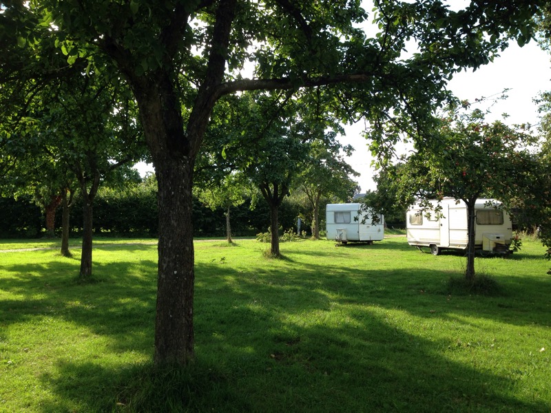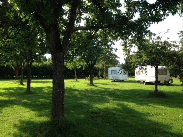 We found one miles down tiny back roads at La Ribardiere organic cider farm, which was handy. They had a couple of caravans and people camping, so for a couple of quid we were able to wash and clean and sit in the orchard sipping the produce. No air miles involved.