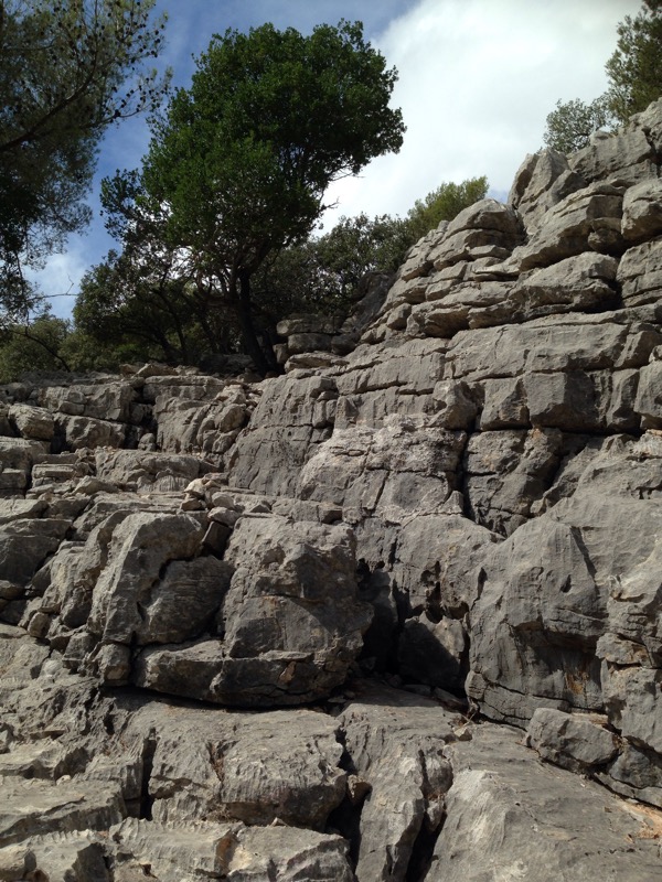 to a coll and up into the holm oak and limestone. Like hiking the Burren at home