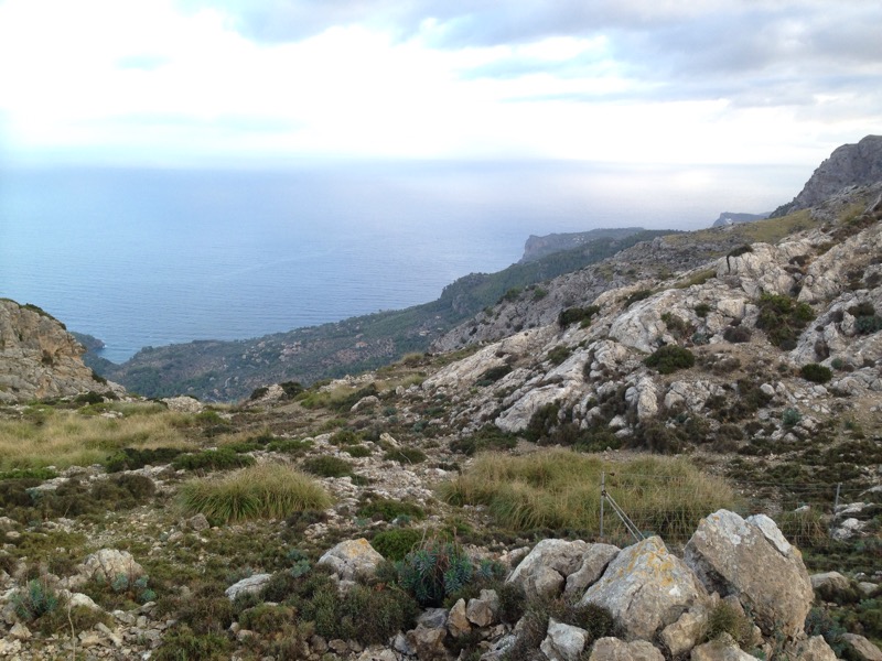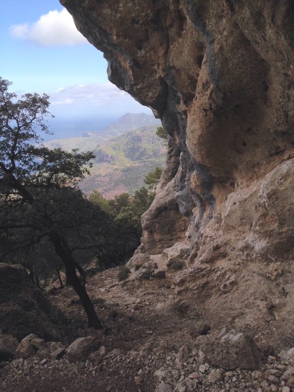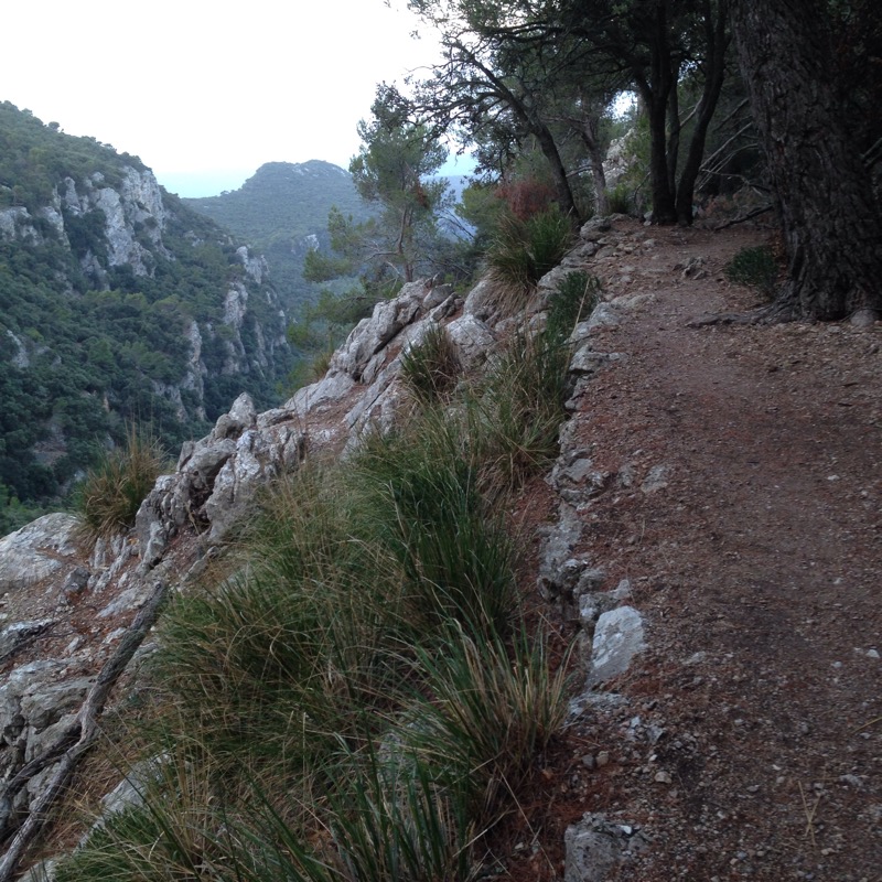 I was hoping this was the Cami de s’Arxiduc, the Archduke’s Path, constructed across the tops of these mountains as a carriage ride. I was supposed to be coming along it from the other end and had to look out for cairns that marked the ONLY SAFE WAY down the mighty cliffs to Deia way way below.