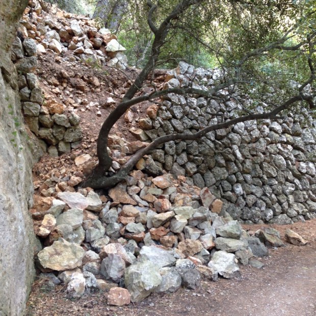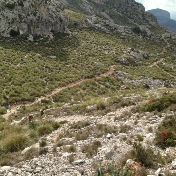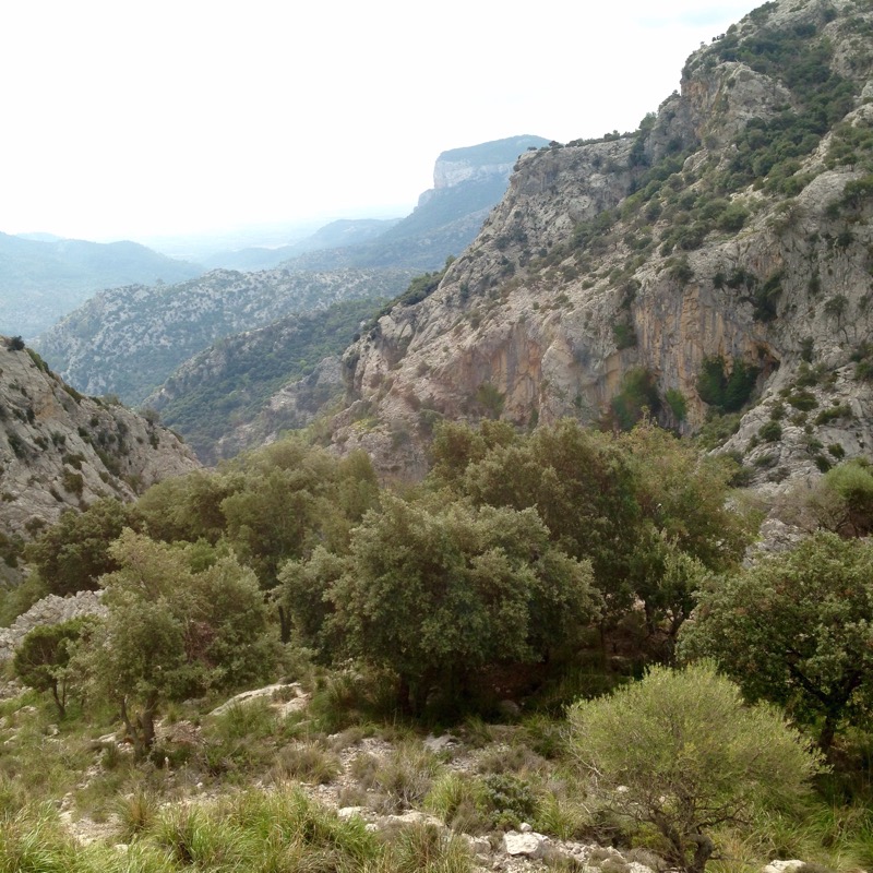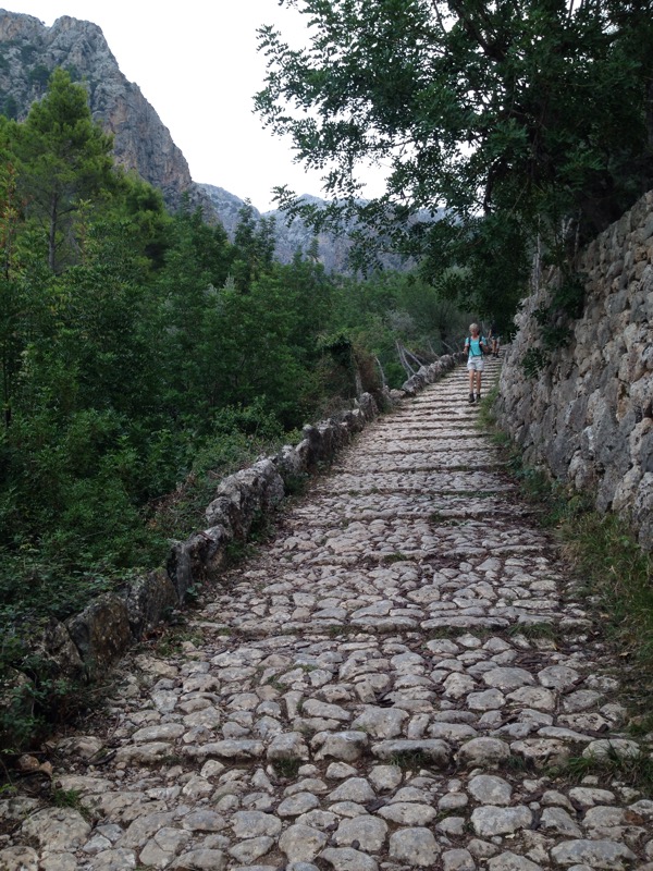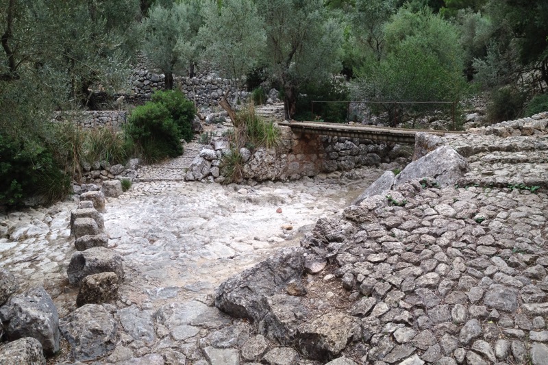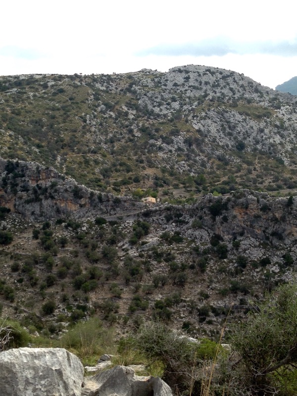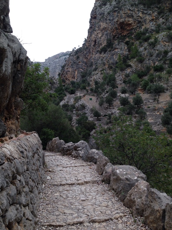 The climbing began pretty quickly and lasted for 10km. At Biniaraix I passed a lovely wash  house but the bar where I had hoped to get supplies was shut. Luckily there was an abundance of Fuentes so I was able to stock up on water before heading up the Baranc de Biniaraix, a fantastic example of cobbled and buttressed trail climbing to over 800 m through countless terraces. So fantastic in fact that it’s designated a site of cultural interest.