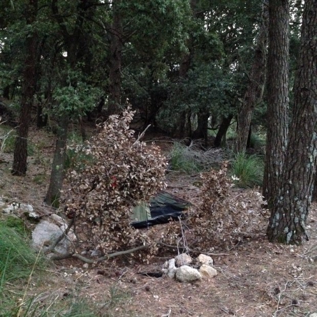It had been spitting with rain and grumbling with thunder while I had climbed the countless steps and I was glad to get to flatter ground with its possibility of a tent pitch. There was an unmanned refuge ahead but still a couple of hours away and after 8 hours of effort I was ready to rest. There had been a no acampar sign and another warning of big game shooting and not to leave the trail so when I found a discreet little spot I made an effort at camouflage.