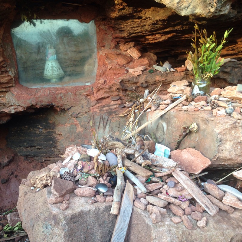 A long day completing nearly 4 official stages and nearly 2 of Paddy’s. It was more of the same the next day made even longer by the fact that we missed a signpost through concentrating on our mutual Spanish and English lessons and not on the route. This meant we climbed a long long hill needlessly, had to retrace our steps and then climb the right long long hill. And we had to spend half an hour fixing my broken pack Macgiver style. Still the effort was rewarded with nice scenery, another holy spring and interesting geological stuff.
