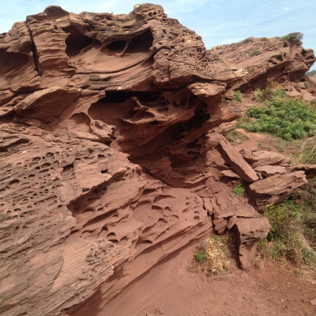 Refreshed we were able to carry on, up and down again,and again on cliff top and level ground till we came a glorious beach that had a road to it. Glorious not only for the colour of the sand but mainly because there was a restaurant there. Sunday Lunch.