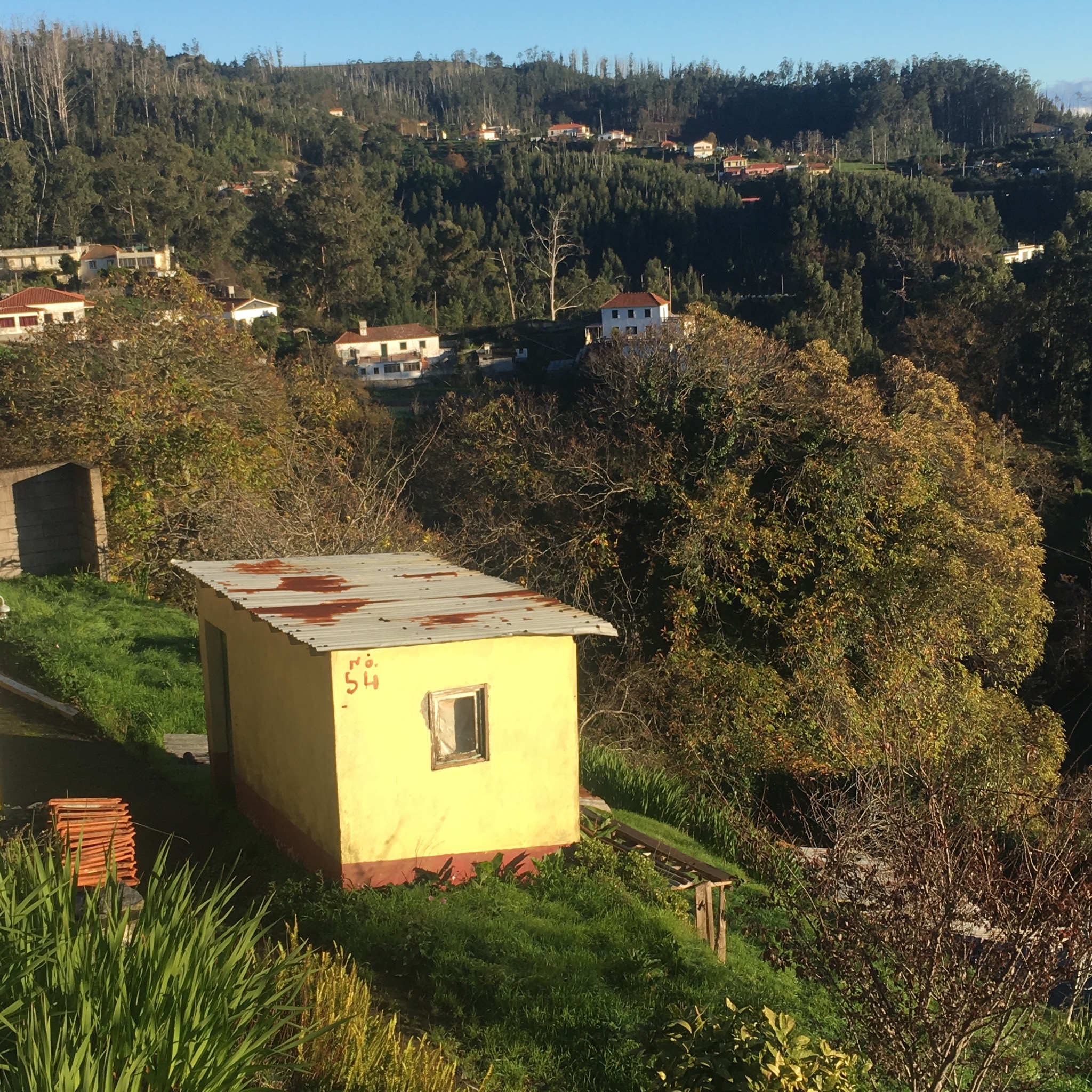 We were going to gain over 200m over the day and most of that was in the first few km. We had left the Levada dos Tornos behind and were climbing up to join the higher Levada da Santo do Faial. On route we past a motley collection of dwellings and gardens including the very modest number 54.