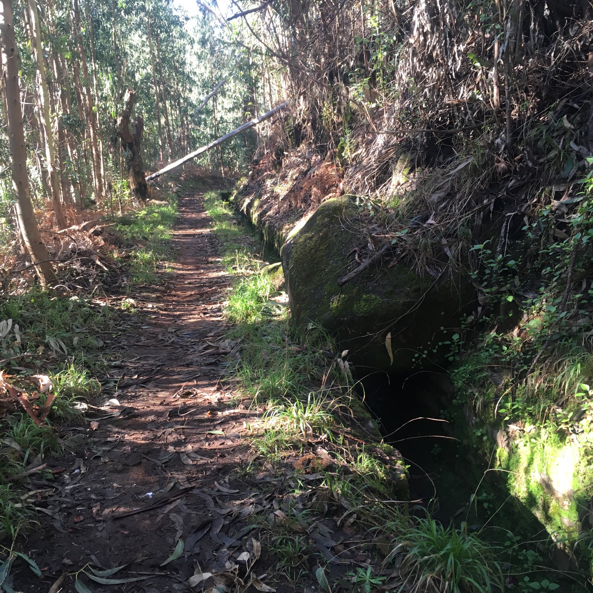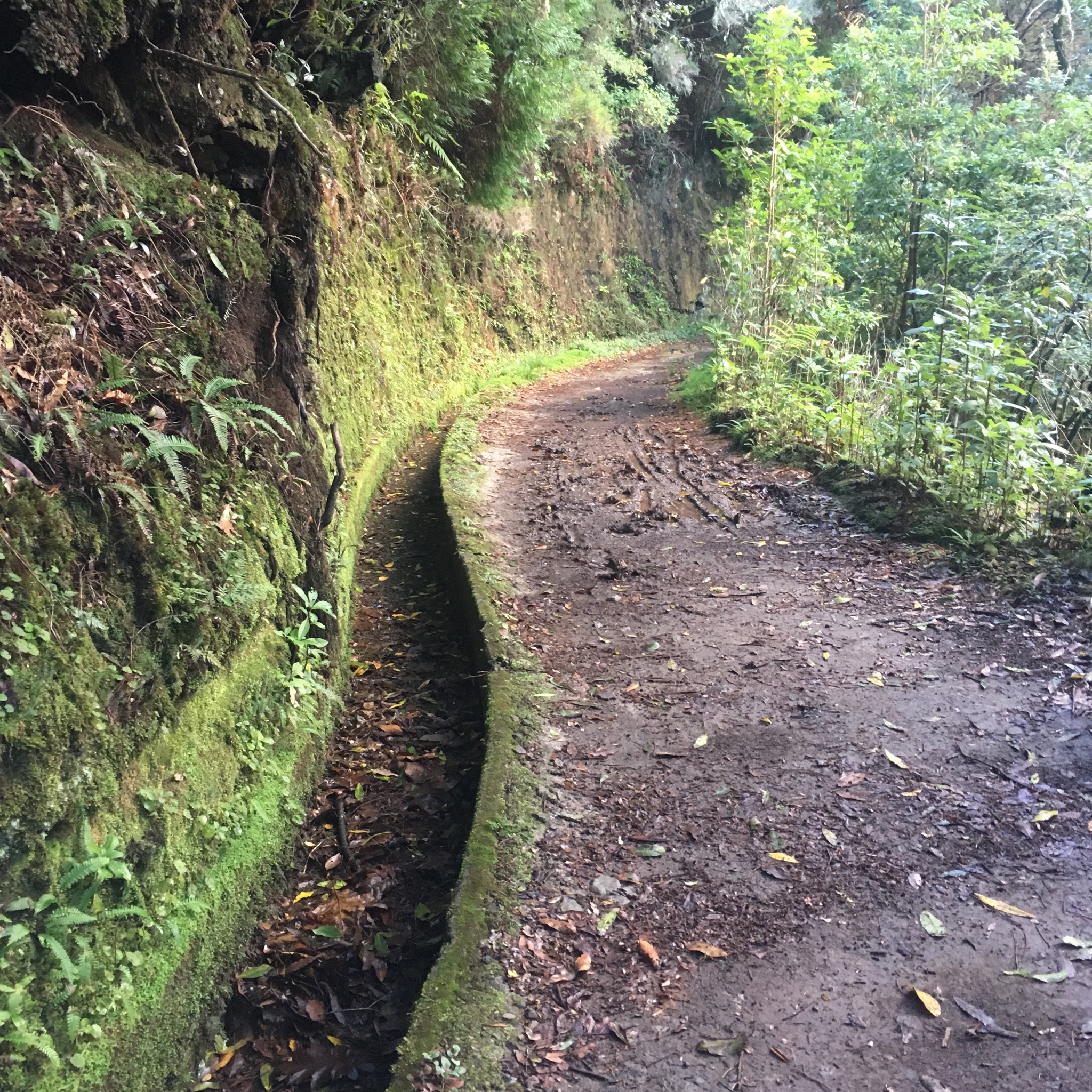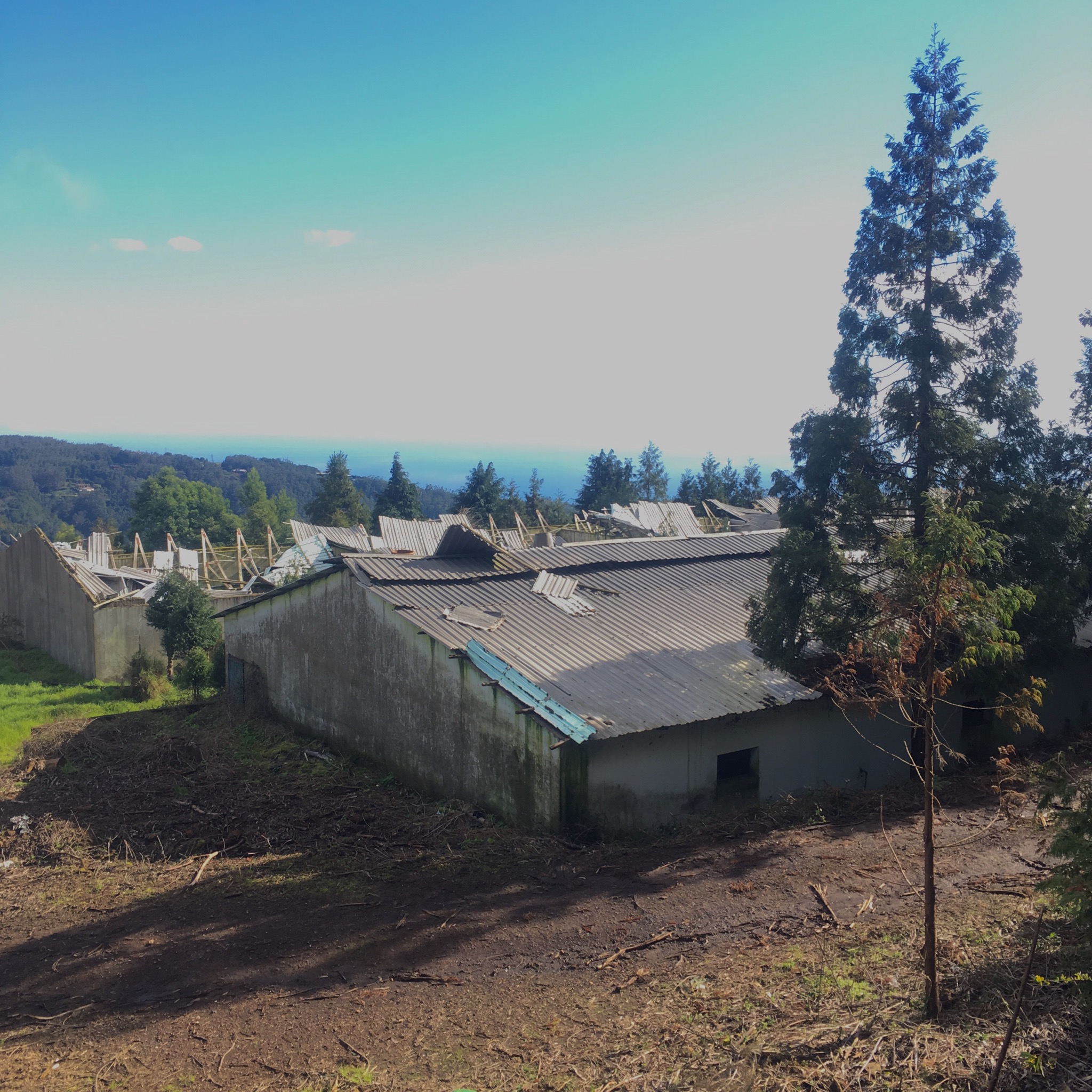 We suddenly emerged onto a road with a transport yard and abandoned piggery before plunging back into the deep forest beside the levada.