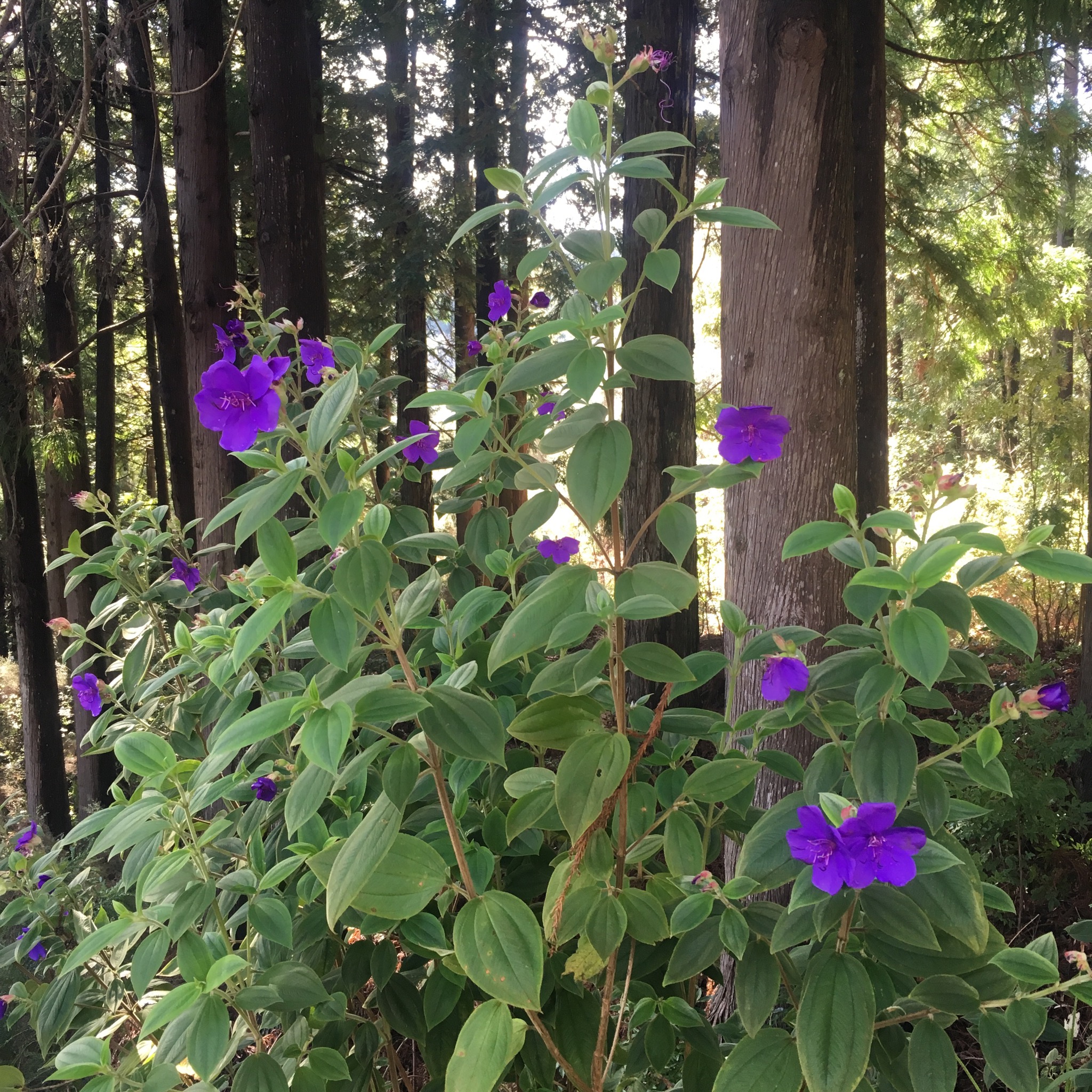 The walkers on the sign indicating the way had a very jaunty step we did our best to match as we admired the verdant vegetation which now included huge ferns, laurel and tree heather.