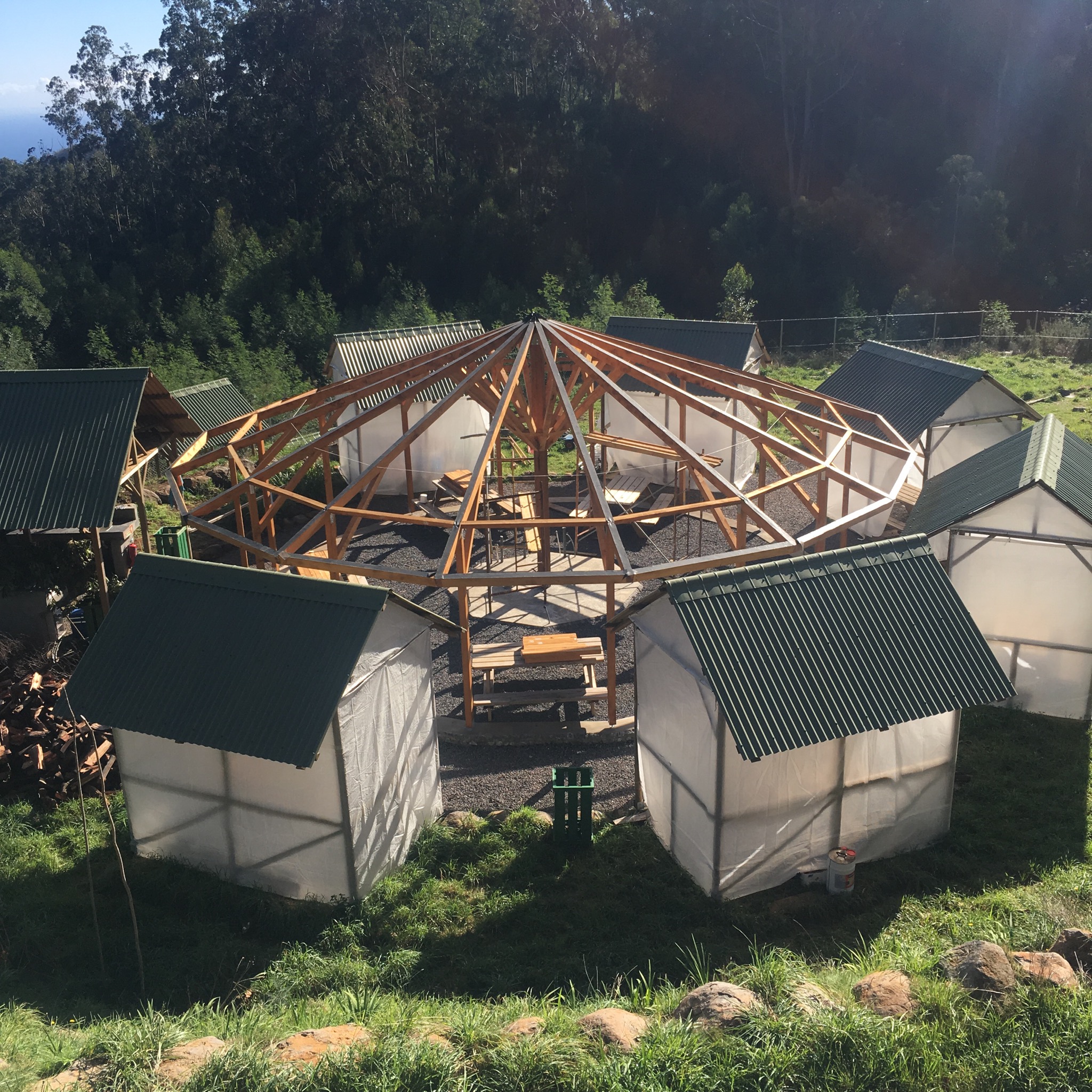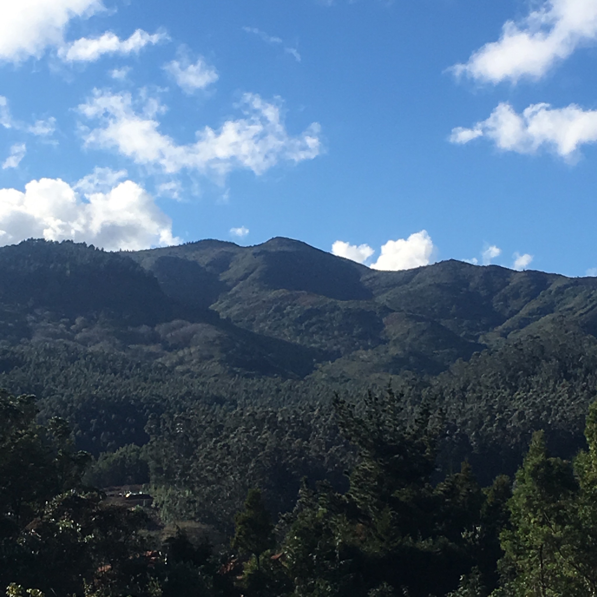 Another km of track past some finely positioned houses and a timber yard led us down to the main Er102 road and very shorty after our hotel on the outskirts of Santo da Serra, with fine views of the surrounding hills we would be scaling in the morning.
