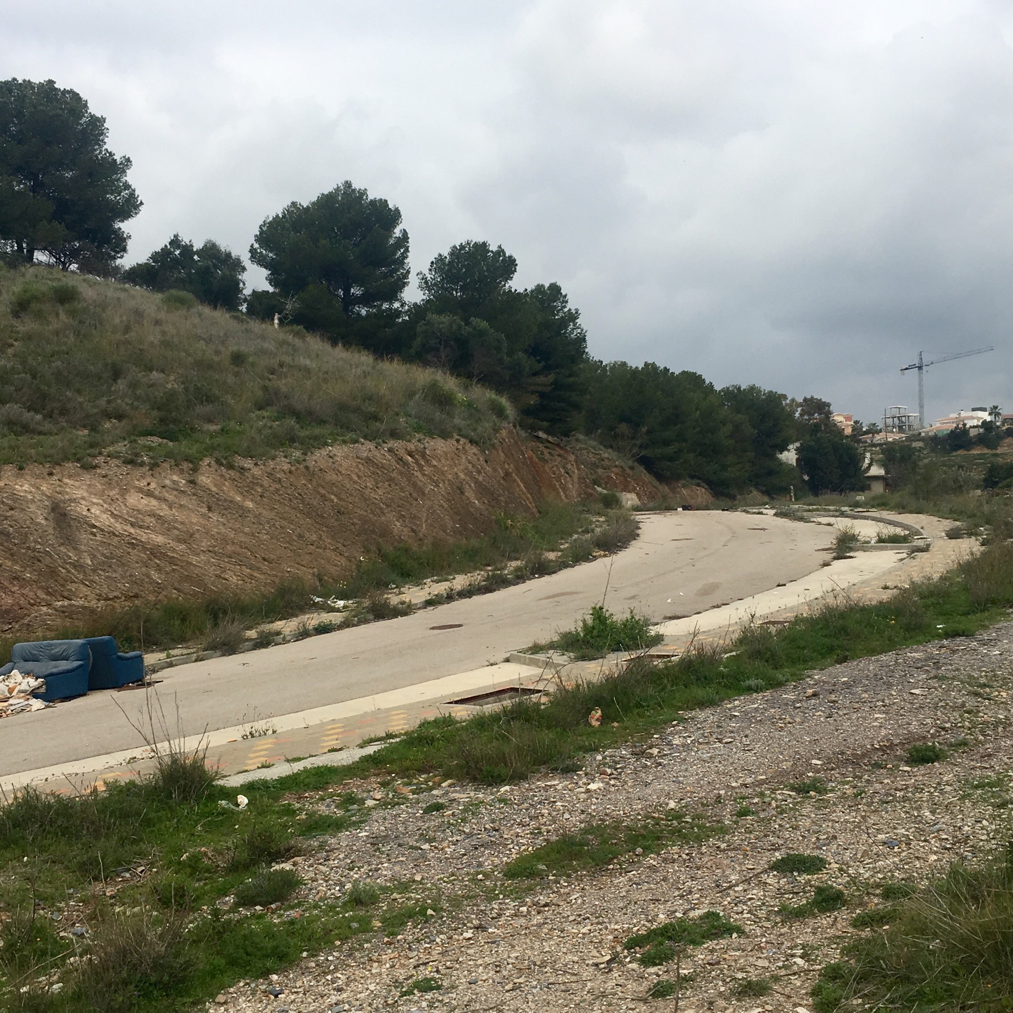 Arriving back at the coast I found myself surrounded by a failed development at Niza Beach where abandoned plots and dumped rubbish were all that was left of property dreams.