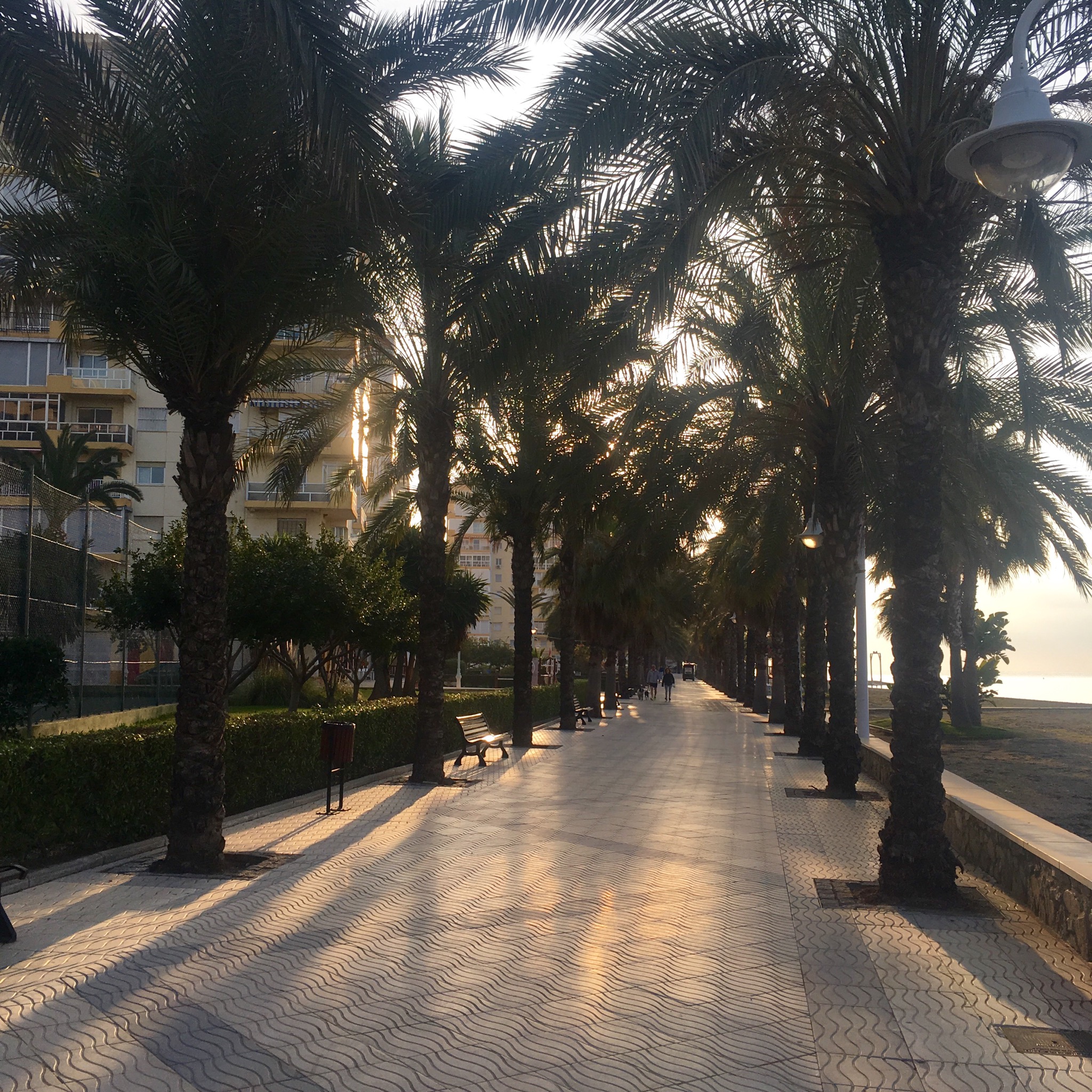 The early morning sun shone through the palms as dog walkers and joggers fulfilled their daily routine.