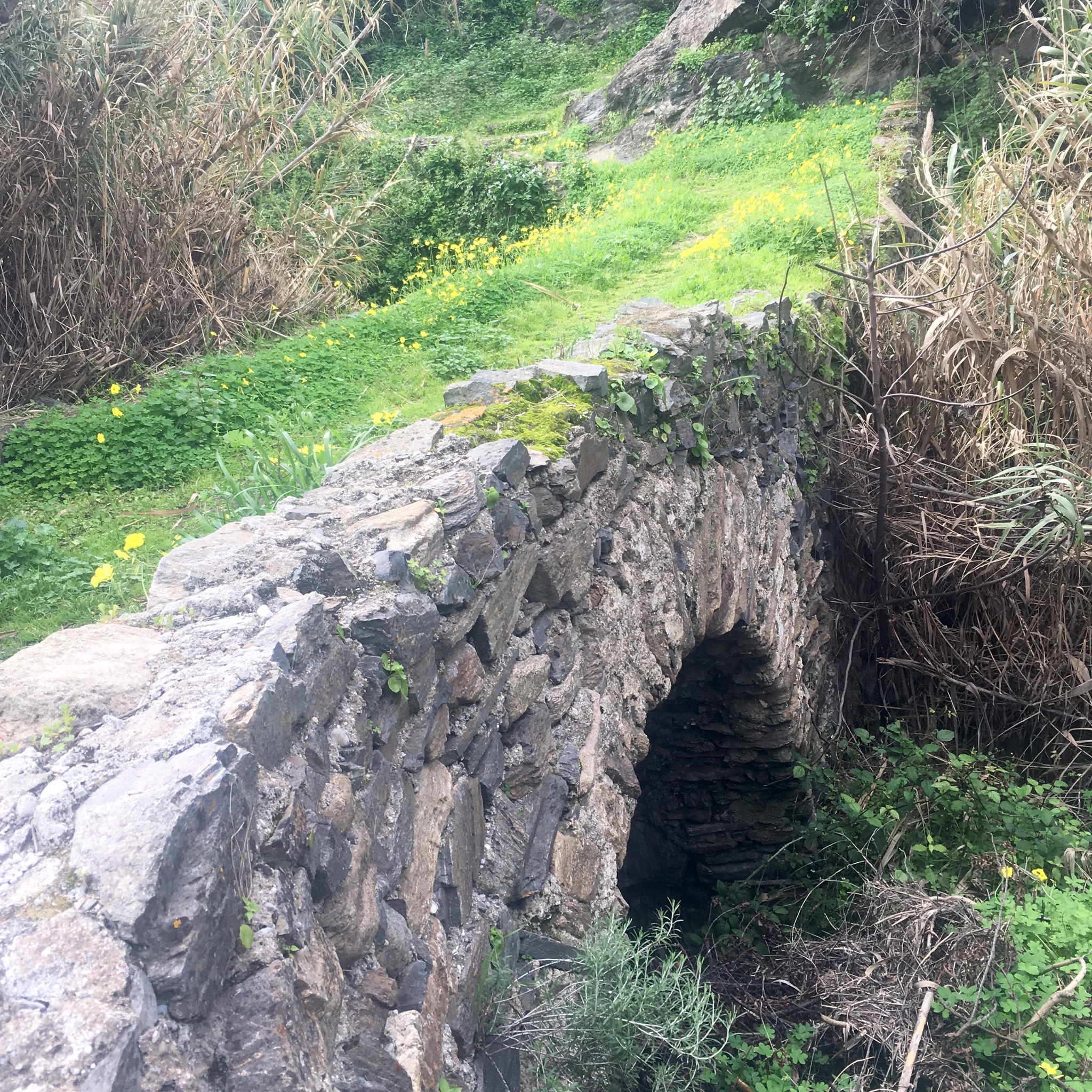 Incongruously, as I passed under the most modern transport route I started down the days oldest, a mule and walkers track that wound down to the valley bottom and over a tiny old stone bridge.
