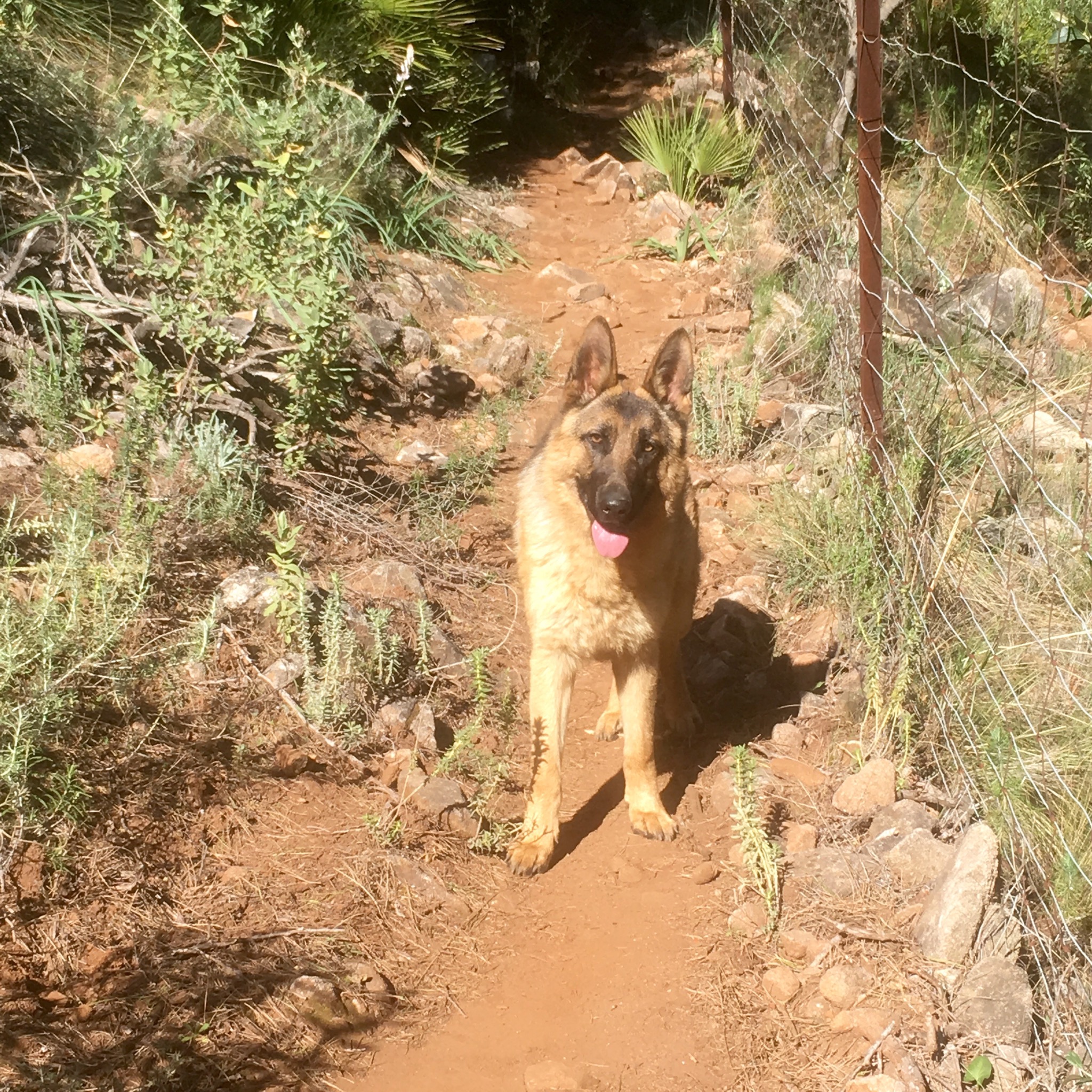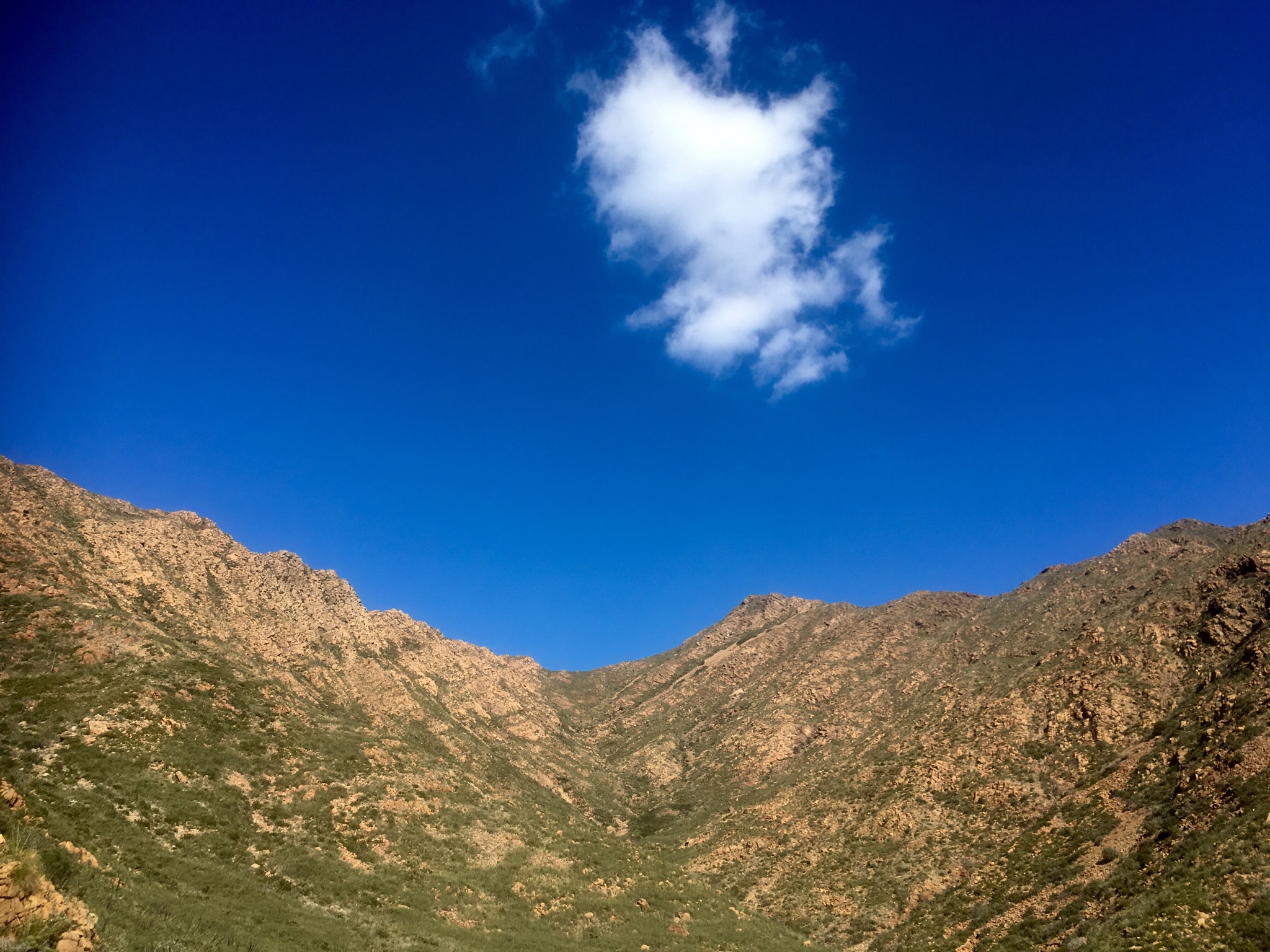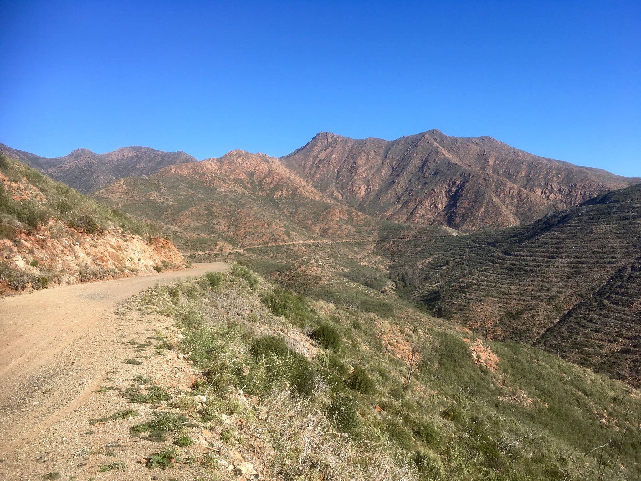 Looking so near- but proving so far, as the trail made a huge loop around the rocky hills. A moment of relief at a fine drinking trough and then more clambering until finally…