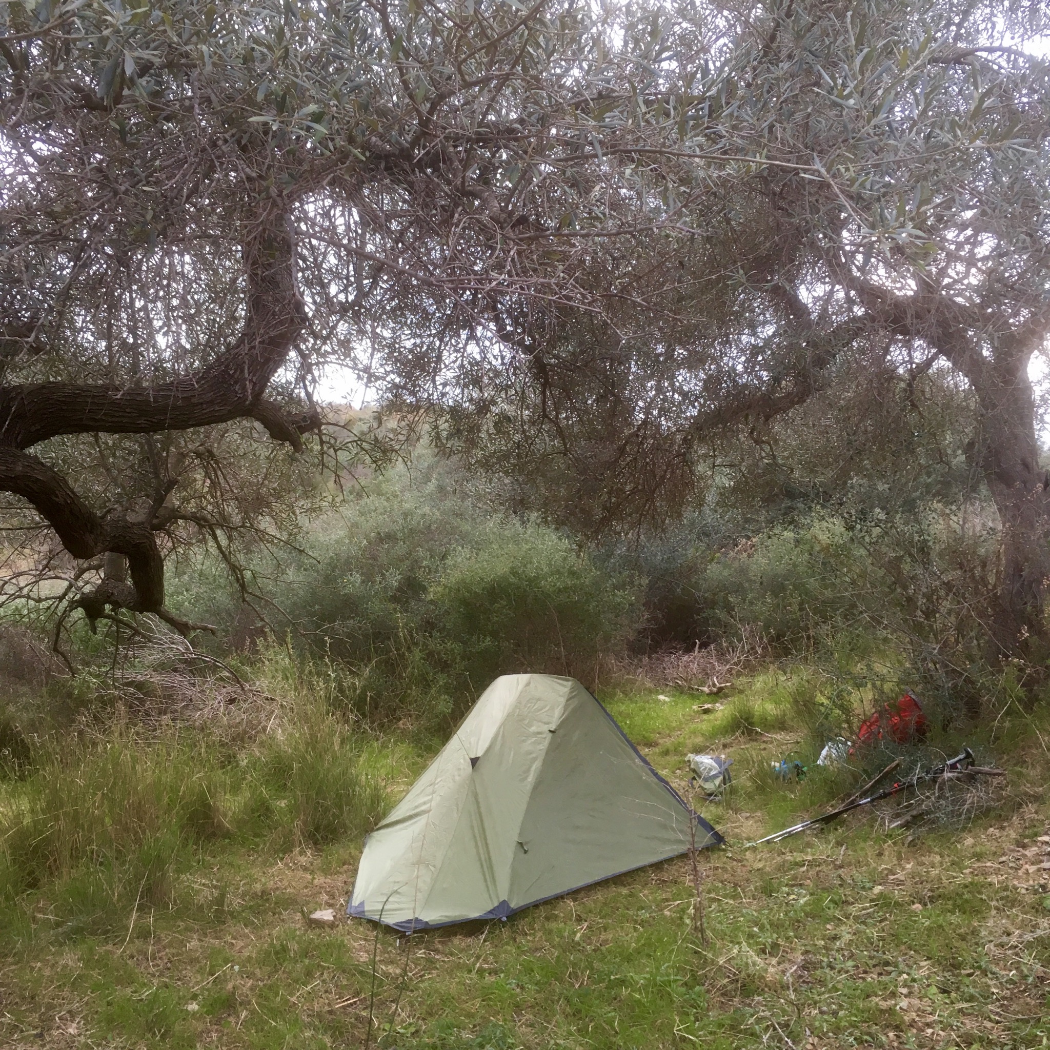I wanted to shorten the following days stage if I could so carried on up into the hills again with the light beginning to fade. The surroundings became more desolate from the fire damage and when a friendly old hippy stopped and offered a ride a couple of Km to a place I could camp I jumped right in.