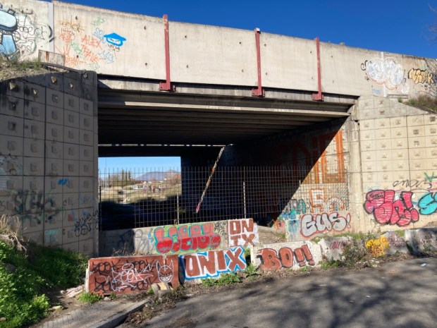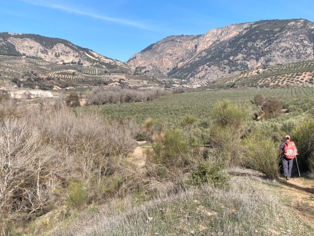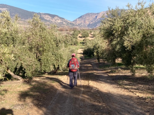 From there the Way led us through olive plantations on what looked like the original road. Still with cobbling intact in places in took us along the river valley on a track that rose and fell on the shoulder of the hills towards Olivares.