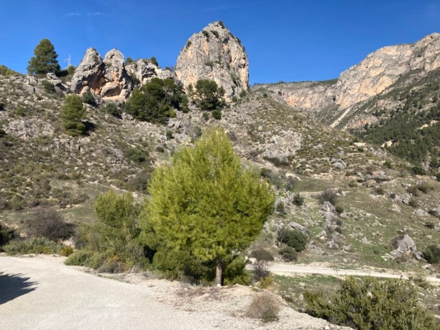 Crossing the river Velillos into town we had hoped for a cold drink but the bars were shut so we continued on. This was the hard but pretty stretch, a climb of 400 m up a track for 3.5 km to our destination.