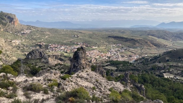 A mirador higher again gave us views over the entire days hike as well as down into the dramatic river gorge and up to the Moorish fortress walls of Moclin. Neolithic cave paintings were found on the cliffs below the castle and have been recreated in signage and motifs around the village.