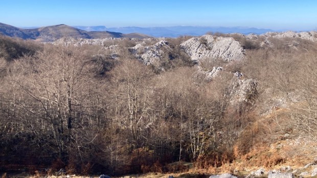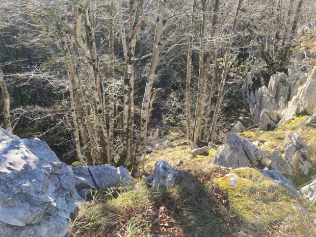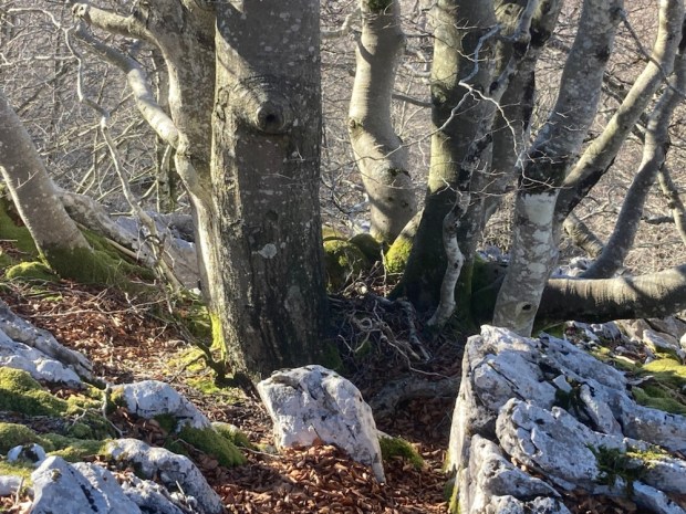 There was a mysterious and timeless aura to the place. The bones of Neanderthals have been found in the caves and the area is rich in dolmens and menhirs. The ancient beech trees looked as though they had been coppiced for millennia for the ironworks and lime kilns and were coated with a variety of rare mosses that would excite any bryologist, as were the rocks and sinkholes. We passed one yawning hole reputed to be 100m deep.