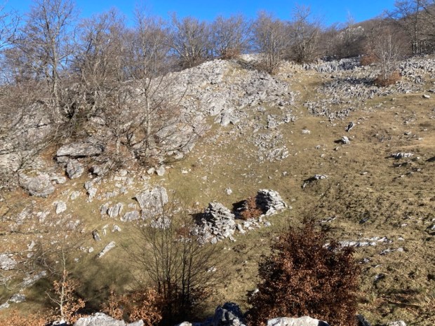 Used since time immemorial by shepherds and woodcutters to gain entry into the rocky plateau , encircled by a crescent shaped ridge of protective limestone, we clambered up and through it- and the wind immediately quieted and we were becalmed.