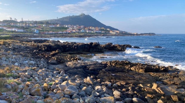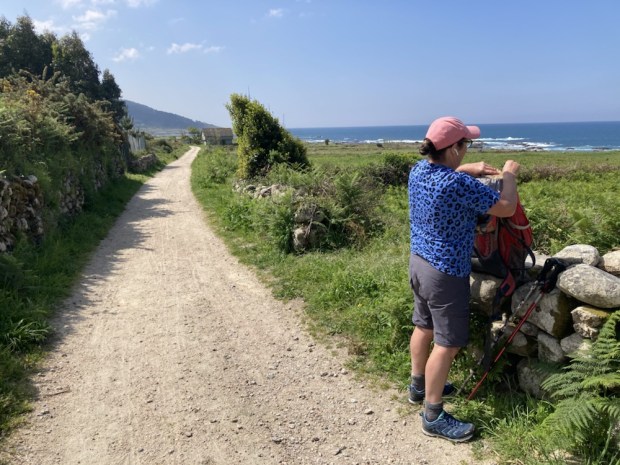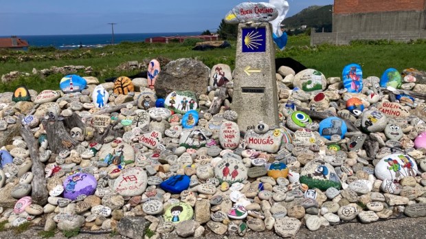 The last leg of the day continued on by the sea before a little detour inland where we passed a pile of stones celebrating the peregrinos.