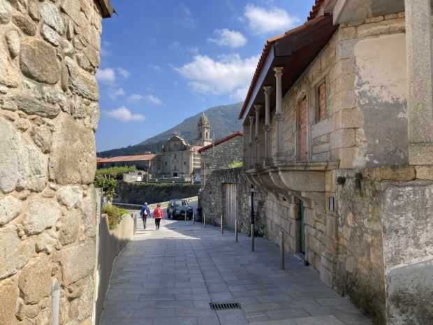 On the approach to Oia I passed the little chapel of San Sebastián and shortly after the massive bulk of the monastery of Santa Maria. Sally had seen me from the passing bus and decided to join me for the last few Km so we continued together through Spanish Connemara.