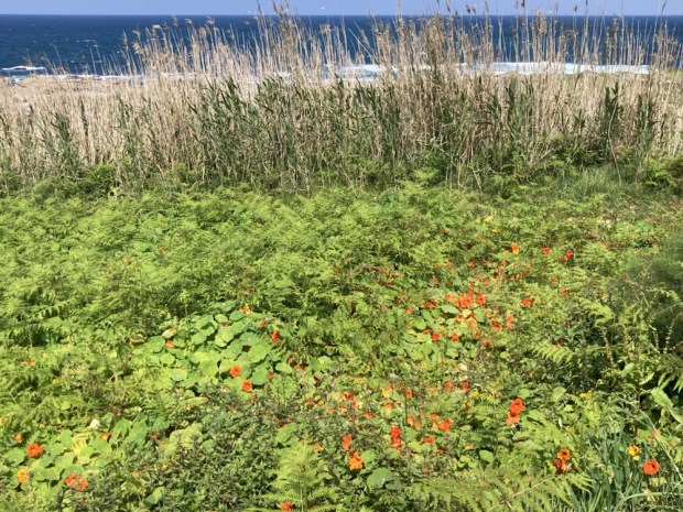 Leaving Sally to nurse her feet and catch a later bus I braved the steps ( easy enough first thing) and wove my way past the church of Santa Maria and fading buildings on back streets that led me down to the wild and rocky coast and a charming path north.