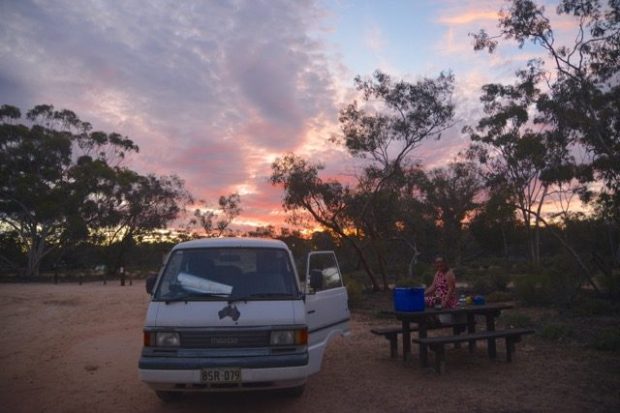 Our first night in the camper was spent among the ghosts of the prospectors, with the distant sound of the massive lorries or road trains out on the highway.
