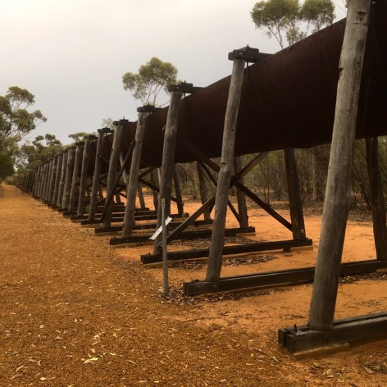 The huge granite outcrop had been used for millennia by Aboriginals for gathering and holding water and the industrious settlers had built a vast wall around them to act as a dam and sent the water down a system of sluices to a dug reservoir that served the goldmines and later the steam trains.