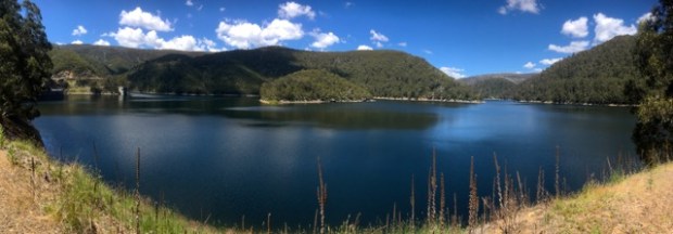 Sure enough, as we left the area, there where many trees that had bring brought down by the winds, but we made it back onto a tarmac road and headed first to relatives at Yackandandah whose towering gums, brought down by the storm,had narrowly missed their neighbours house, and on up into the beautiful Snowy Mountains.The mountains had suffered a devastating fire some years ago and the bleached skeletons of the old forest stuck up above the new growth over a vast area as we rose ever higher. The rivers had been dammed in 16 places, creating vast lakes that fed 7 power stations, in the hydroelectric and irrigation scheme that was constructed over 25 years from 1939. The Snowy scheme is the largest engineering project in Australia and was another example of where workers lived for years in tents, including during the Alpine winters.There were more than 100 temporary bush camps in remote alpine country across the vast project.  In 1948 Major Clews, the chief surveyor for the massive scheme, insisted on tents even in the snow. He suggested that if any of his men did not like living under canvas they shouldn’t be in the bush at all.