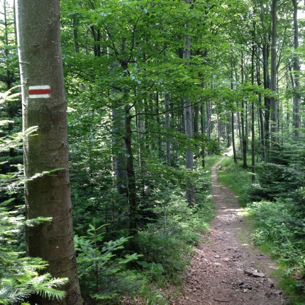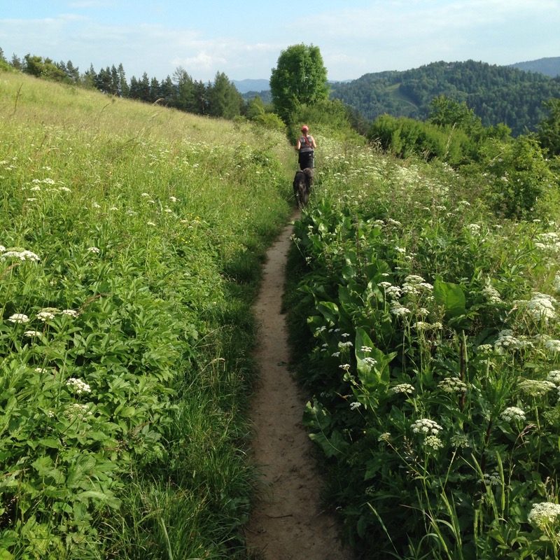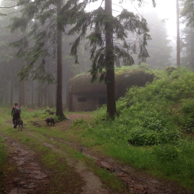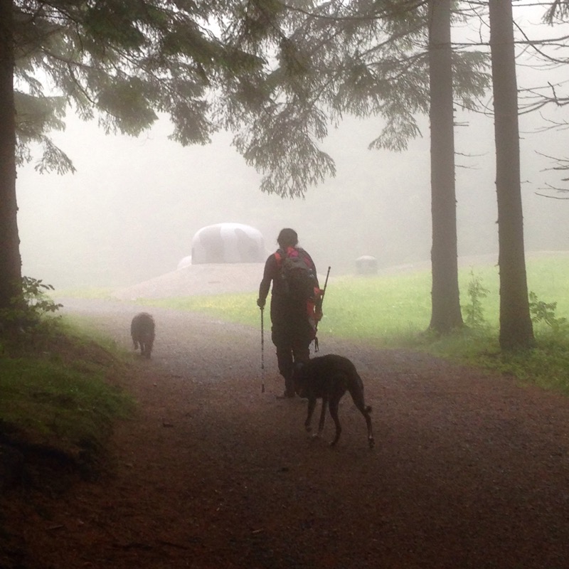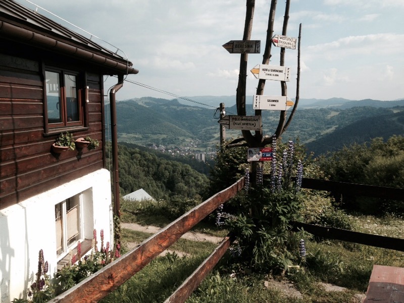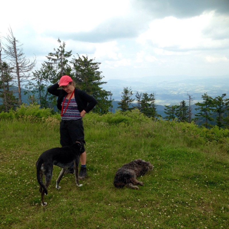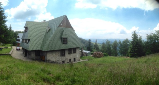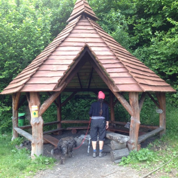 Eventually reaching the summit of the highest peak on the ridge at 1173m where what the map had indicated as a “mountain but” turned out to be a big place where you can eat drink and sleep in a room or camp with benches and tables around a big fire pit complete with cooking cranes and trivets. Very civilised. We discovered their is a whole chain of these places across the mountains, unfortunately mostly in the dog unfriendly National Parks, but we’re hoping we might use them on the Slovak side of the Tatras which allow dogs (might have to wear muzzles).