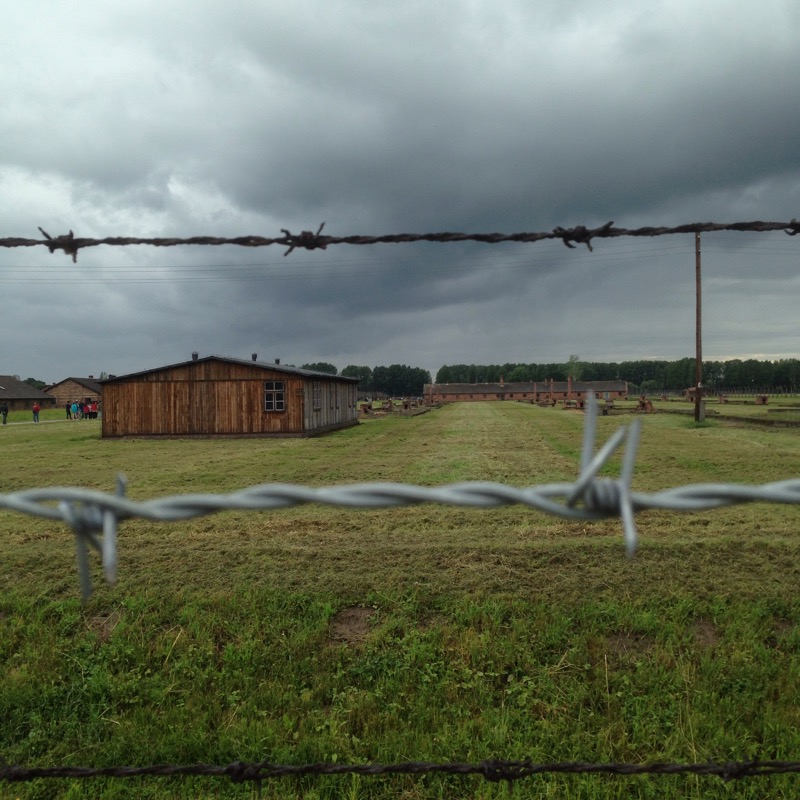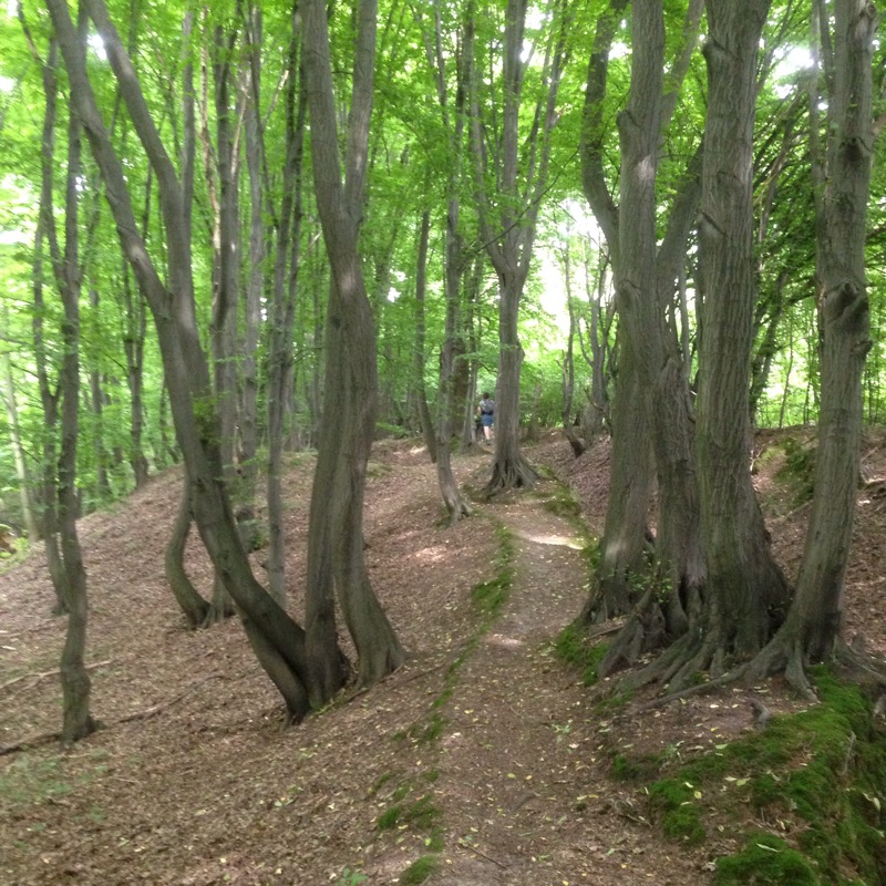 We hiked up through the Wolski Woods from the camp to a viewpoint overlooking Krackow. Some of the trees sported an unfamiliar bark