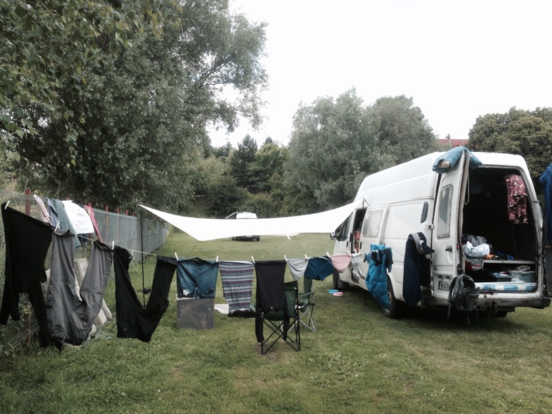 We enjoyed a morning bring down the tone of our campsite on the outskirts of Krakow by hanging up our washing and airing all our cushions and bedding etc surrounded by the smart luxury motor homes. We have a “camper van”. Big difference.