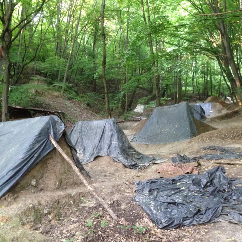 We tried a different route back through the woods and got lost but stumbled upon some lads building an impressive and extreme mountain bike trail. The photo cannot do it justice as it covered about an acre but they had sure put the time in.