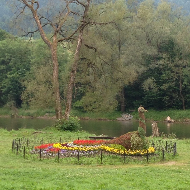 and in the morning headed to a popular and prosperous spa town, Szczawnica, at the beginning of a 26km walk we had put together from the mass of trails on offer. One of the features of this area seems to be floral sculpture and there’s plenty of colourful ones on display.