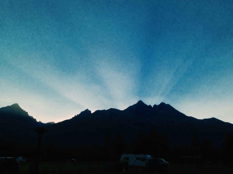 We shared the shores of Liptovsky Mara with a mixed bag of free campers. There was a gang of hard partying youth celebrating the saints day holiday with drink and a mix of techno/folk chanting and cheering in a well behaved way till about 9.30 when they politely turned off the pumping sound system. There were some families with kids out for the (hot)day. There were a lot of serious fishermen with lots of gear and multiple rods and inflatable dinghies with electric motors who were constantly on the case, catapulting bait, checking lines, throwing nets, putting out floats, motoring and rowing around, and reeling in a lot of poor stressed fish that then got released again making the whole operation a bit pointless to me. And in the middle of it all a couple of young lovers oblivious to everything around them cavorting and pawing and giggling on the beach.