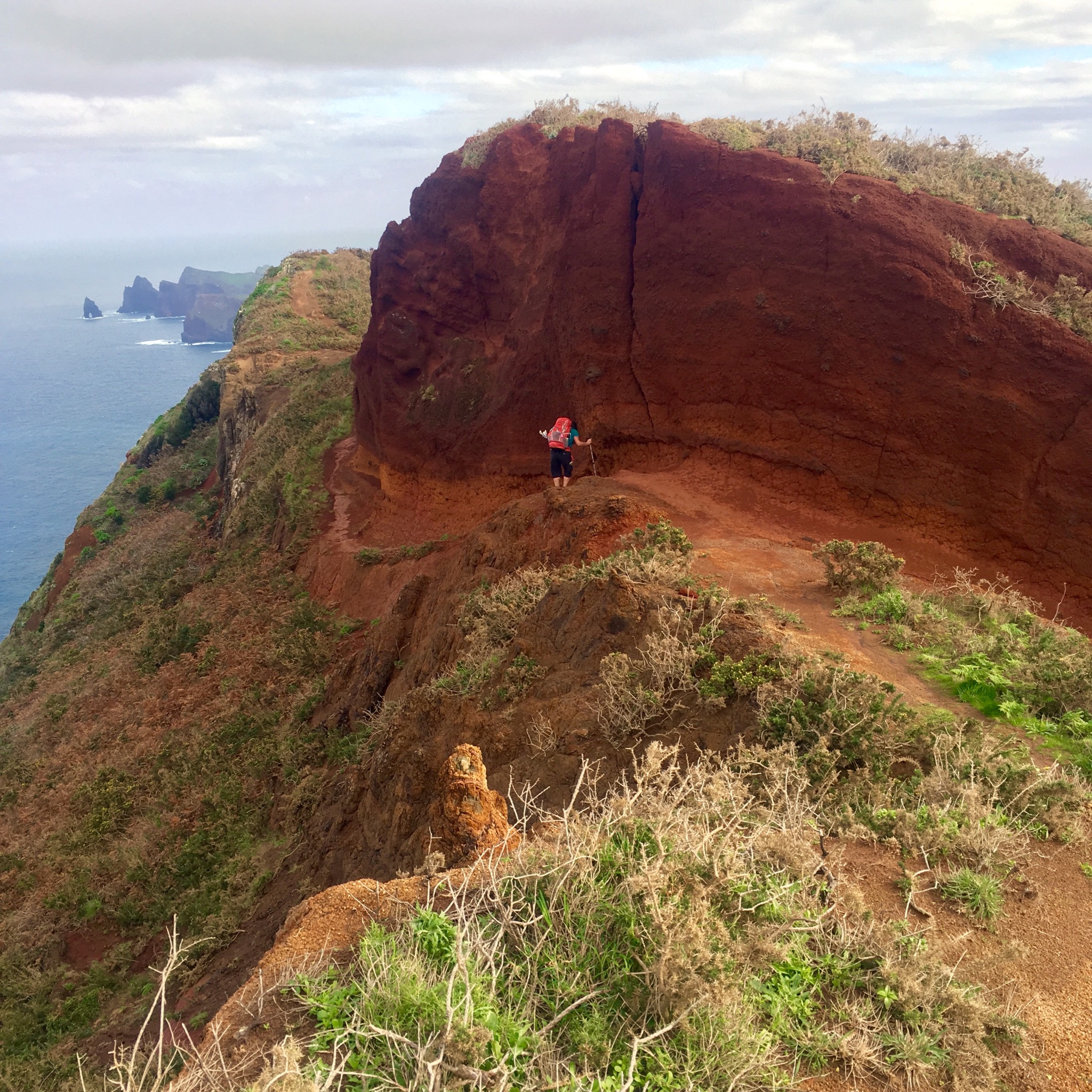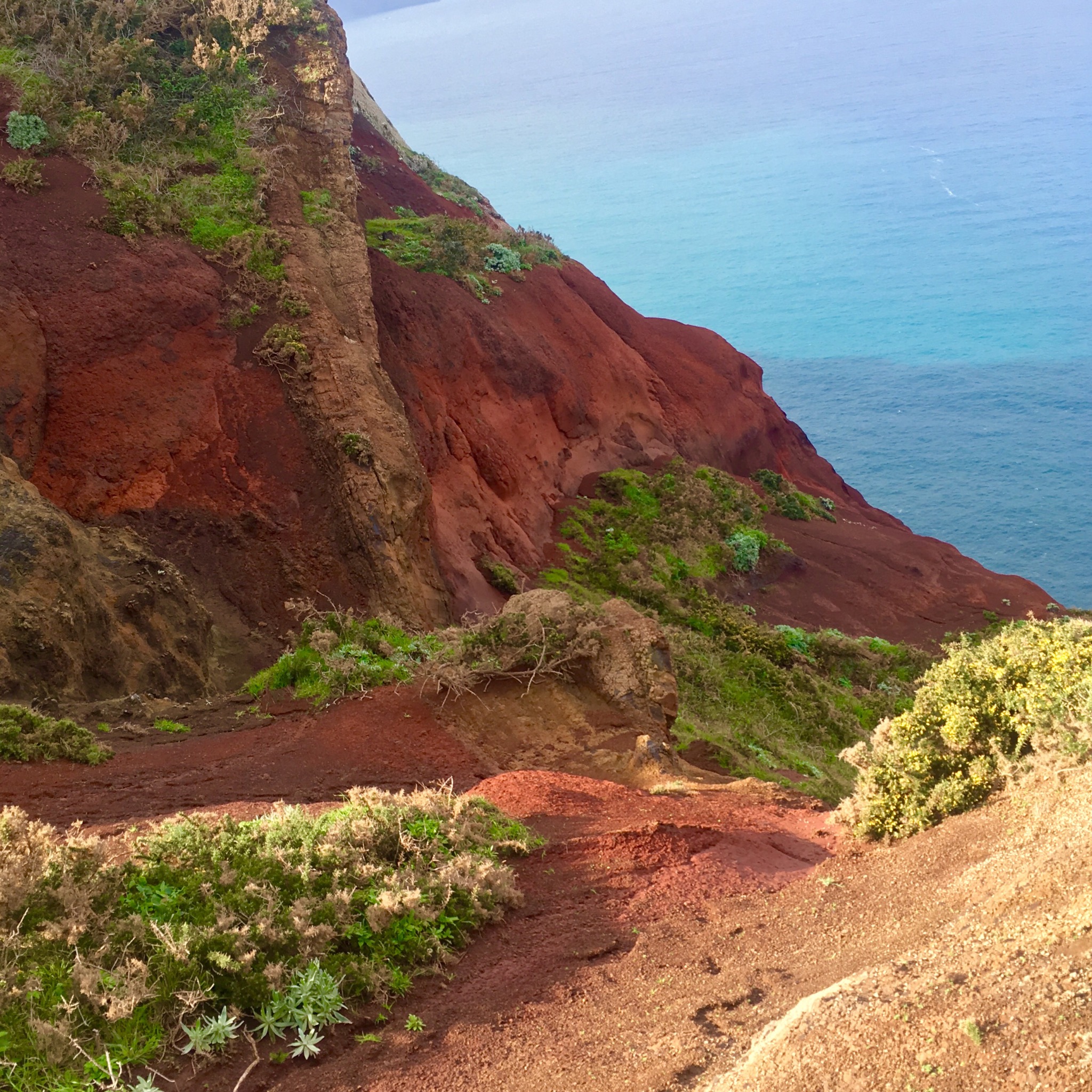 Reaching the peak of a headland we had a fine view back over the Ponta de Sao Lourenco before plunging down and across a wide hidden valley complete with cultivated terraces still being worked.