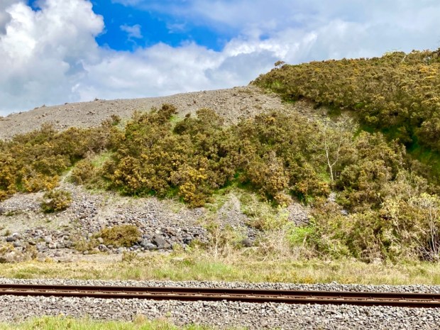 Escaping the traffic on the busy main road we took to a lane that led us alongside the railway and an esker the area is renown for. The Esker Riada is the system of ridges of boulders, gravel and sand left by retreating glaciers that stretches from Dublin across to Galway.